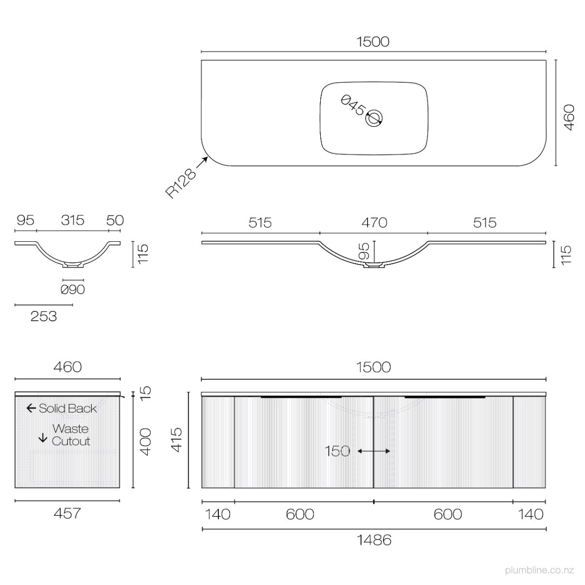 A beautiful combination of curves is formed when our latest vanity collection, Ava Curve, is paired with our signature Spio vanity top. A fine fluted profile, available in 12 modern thermoform colours with handles available to complement your vanity or tapware.