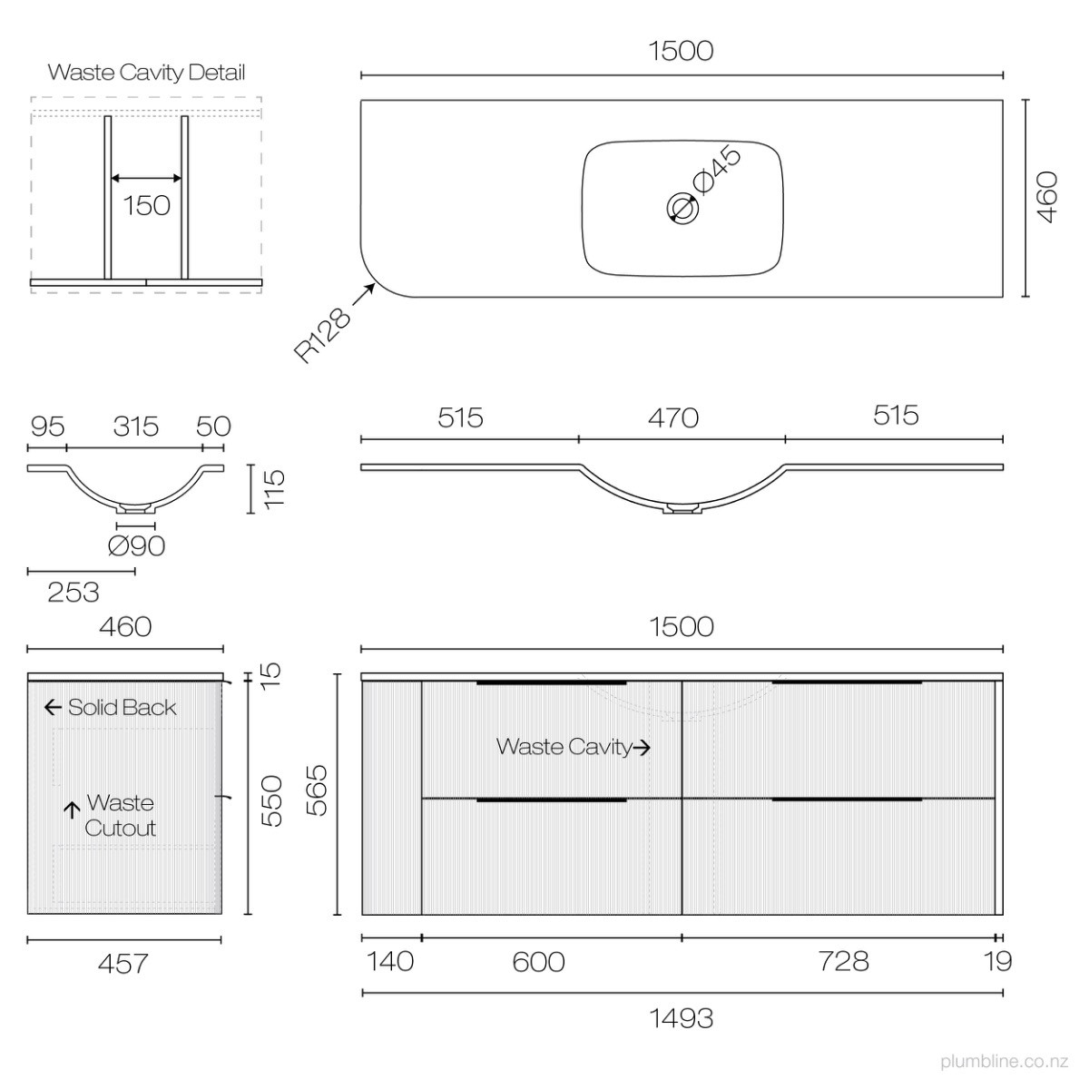 A beautiful combination of curves is formed when our latest vanity collection, Ava Curve, is paired with our signature Spio vanity top. A fine fluted profile, available in modern thermoform colours with handles available to complement your vanity or tapware.