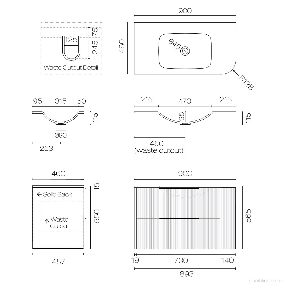 A beautiful combination of curves is formed when our latest vanity collection, Ava Curve, is paired with our signature Spio vanity top. A fine fluted profile, available in 12 modern thermoform colours with handles available to complement your vanity or tapware.