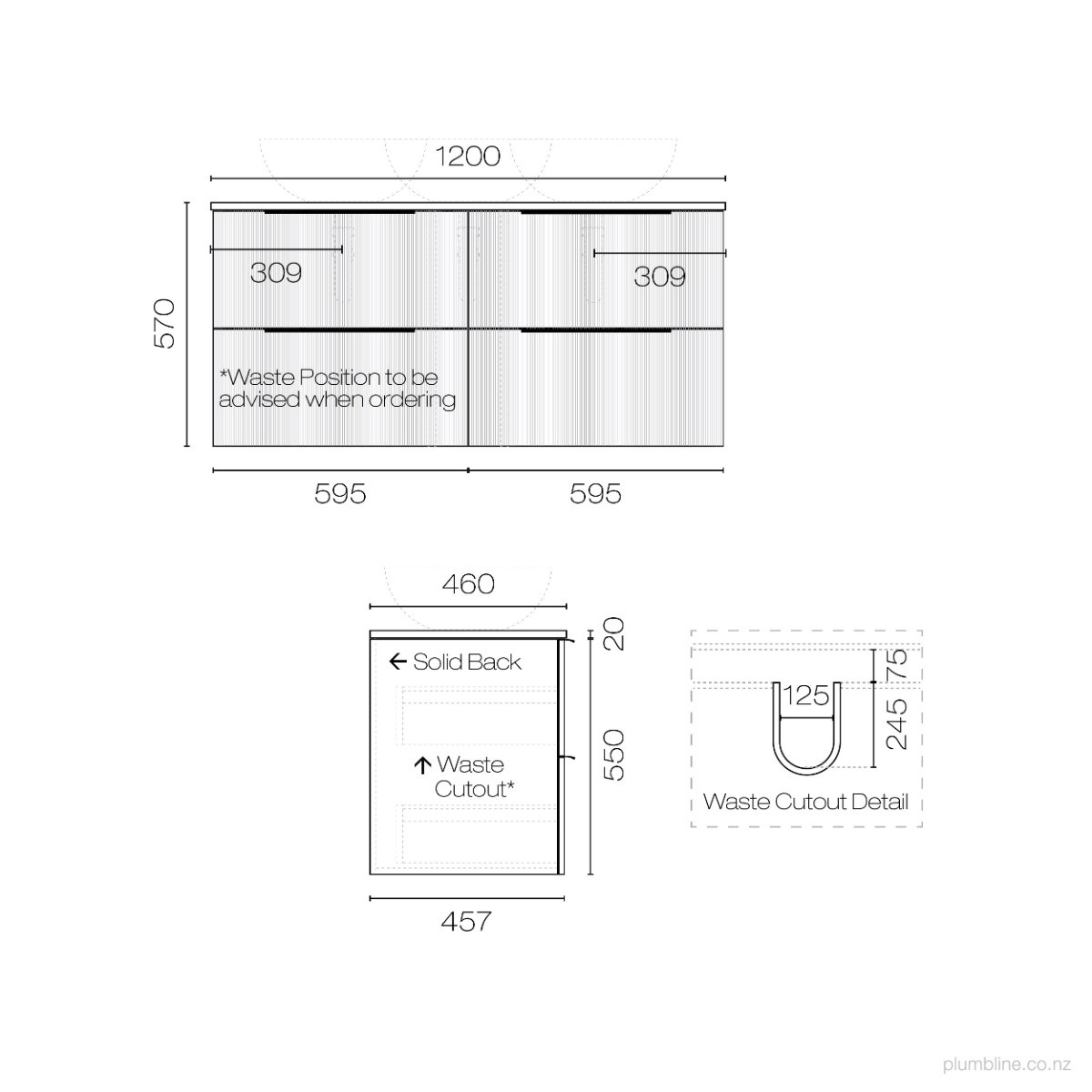 Ava Curve Opaco 1200 2 Drawer Vanity