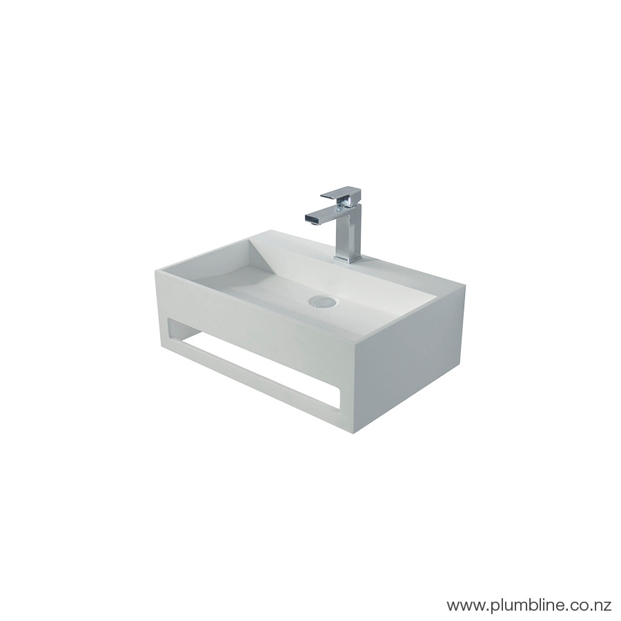 The Axa collection combines a thin wall design with clever function, stylish good looks and hardwearing practicality. The range includes basins with an innovative built in towel rails or storage spaces, with the larger sizes become vanities with handy integrated soft close drawers, and a unique bath with a contoured interior. Made entirely from matt white solid surface means the units are completely water proof, ideal for the wet bathroom environment.