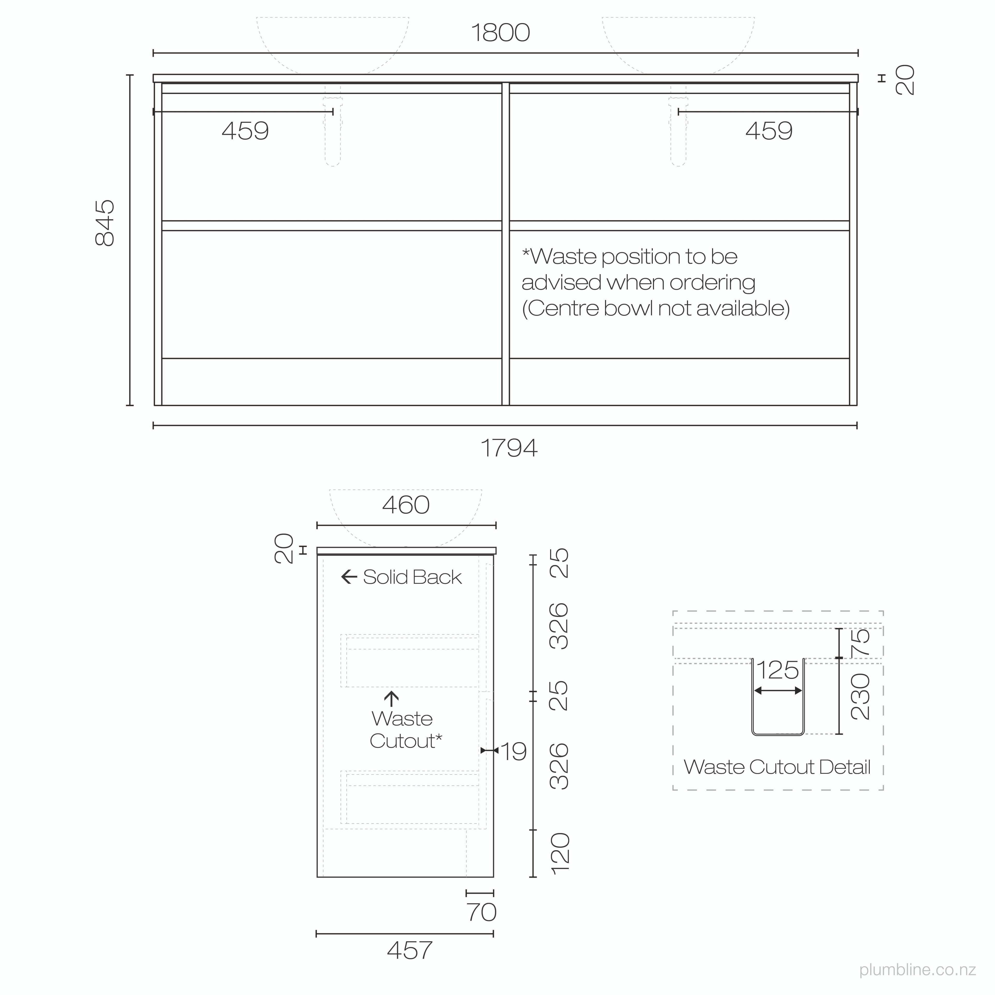 Alma Spio 1200 2 Drawer Floor Vanity Left Basin