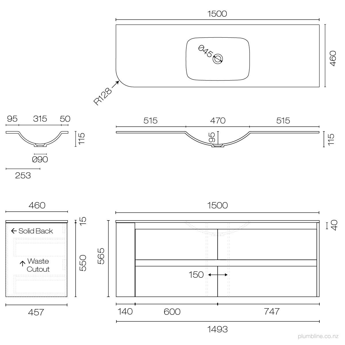 Stanza Curve Spio 1500 Left Corner 4 Drawer Vanity Double BasinPlumblineNZ$7,999.00View productCompare