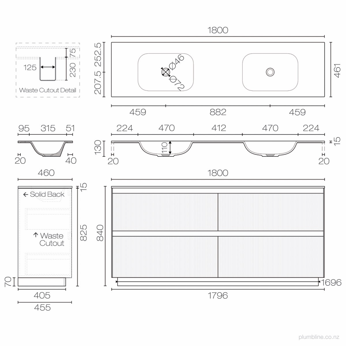 Strata Spio 1800 4 Drawer Floor Vanity Double Basin
