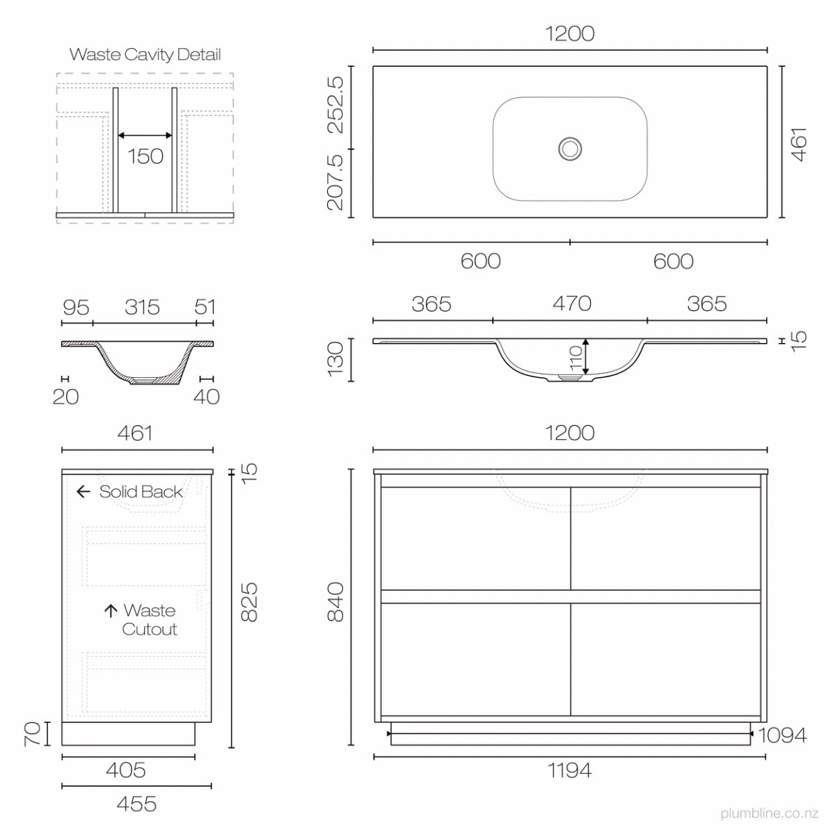 Mounted on vanity cabinet or inset into bench top (3)