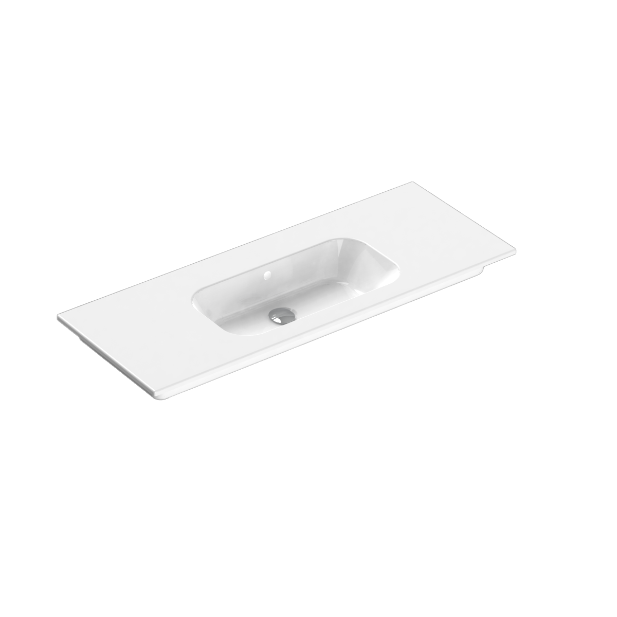 The Casello Vanity Top, crafted from vitreous china, features a sleek, modern shape that brings a touch of Italian craftsmanship to your bathroom. Made in Italy, it offers both style and durability for a contemporary look that lasts.