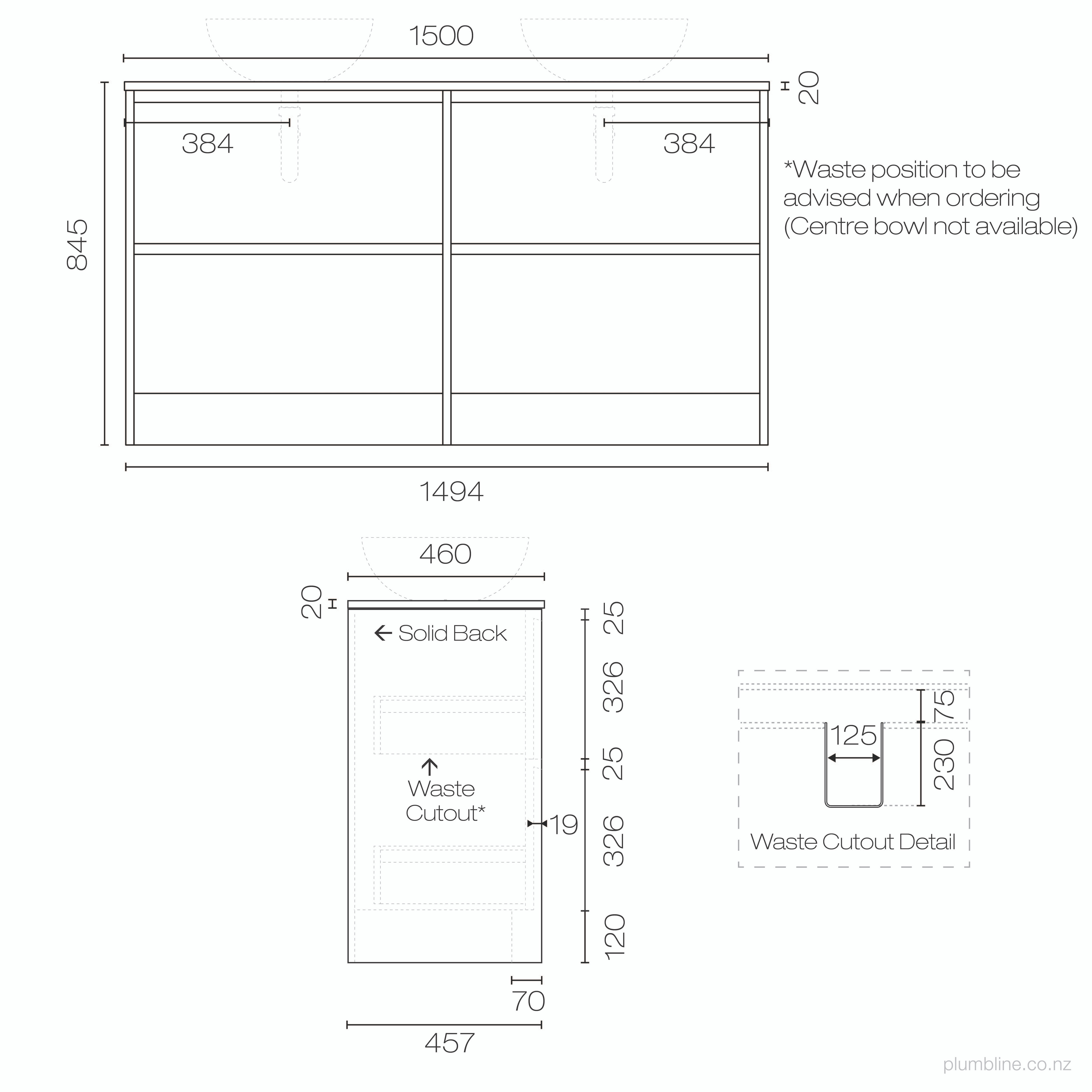 Alma Opaco 1500 4 Drawer Floor Vanity