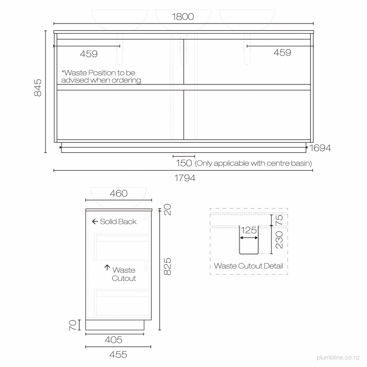 Prava Opaco 1200 3 Drawer Right Vanity