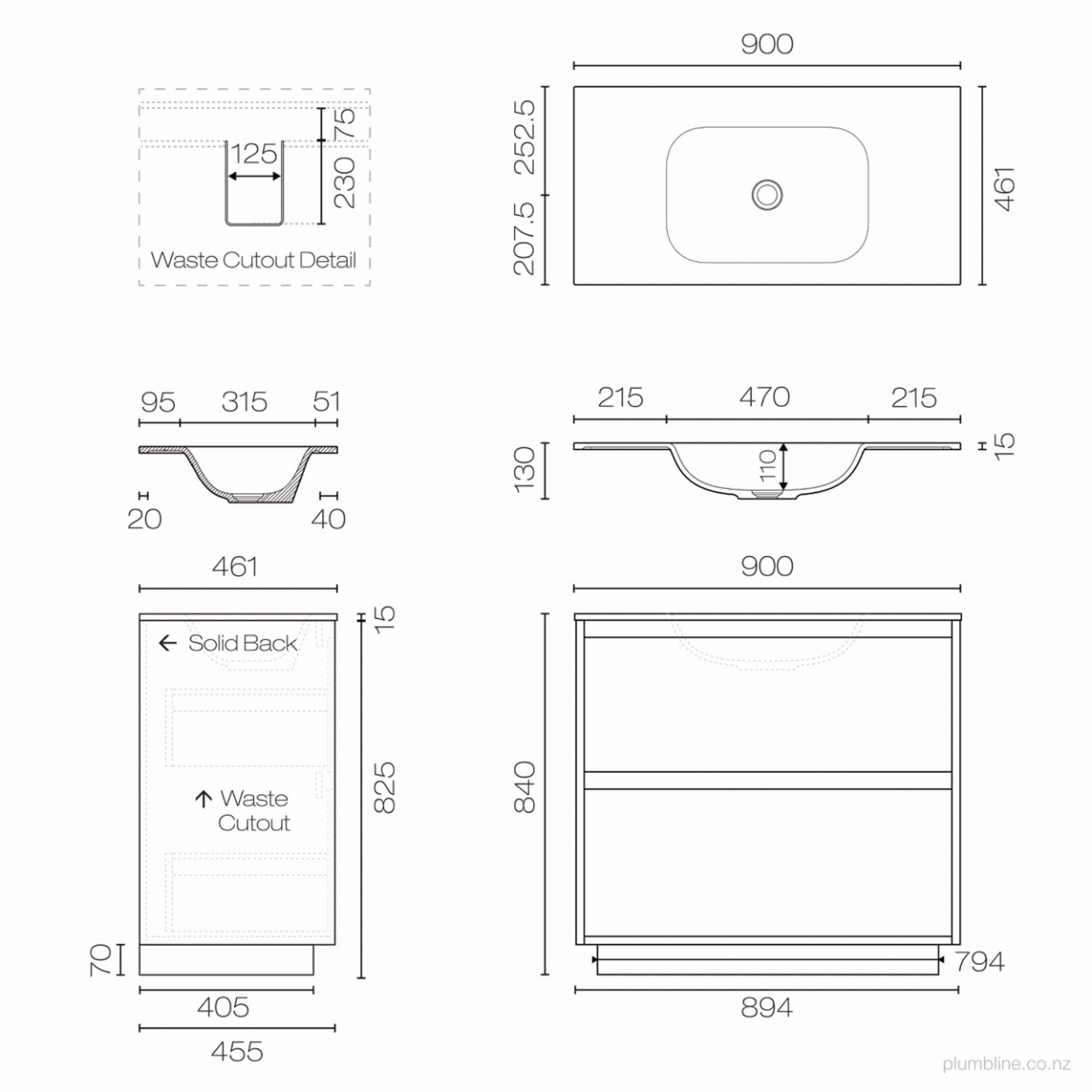 Prava Spio 900 2 Drawer Floor Vanity Centre Basin