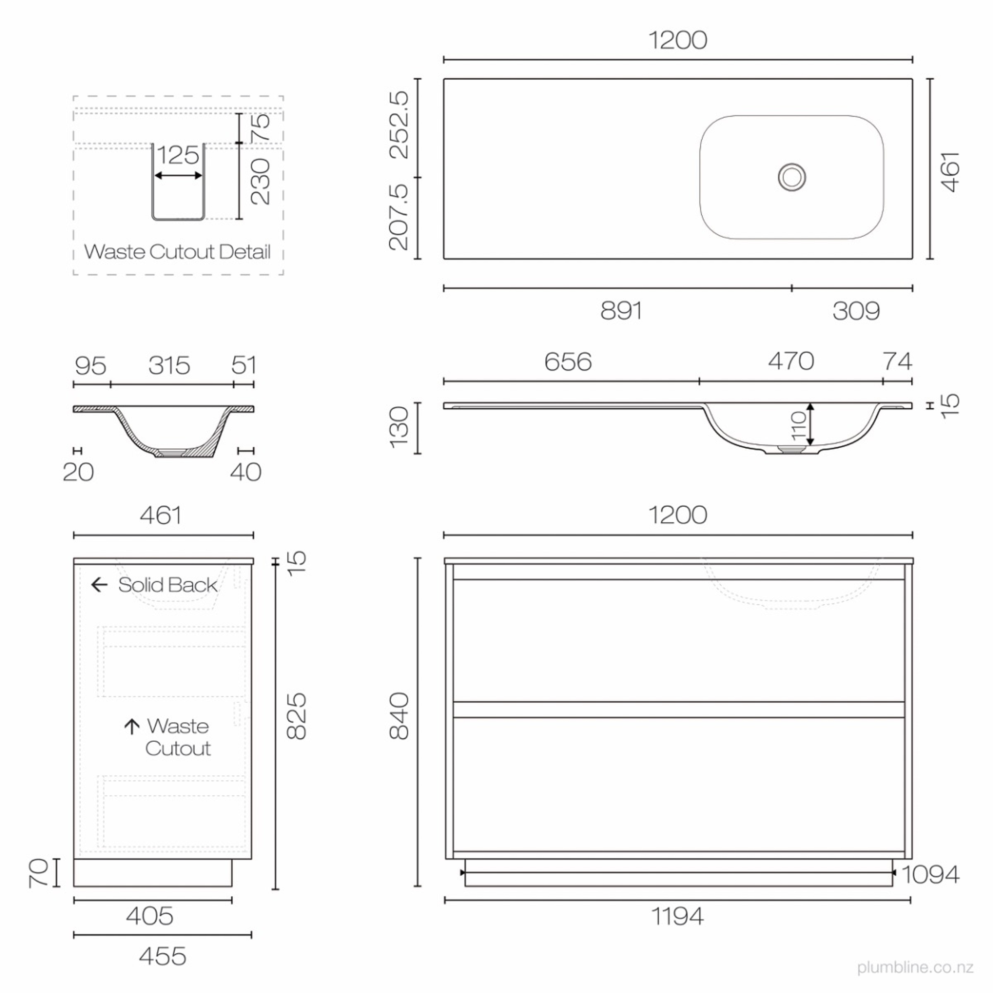 Prava Spio 1200 2 Drawer Floor Vanity Right Basin