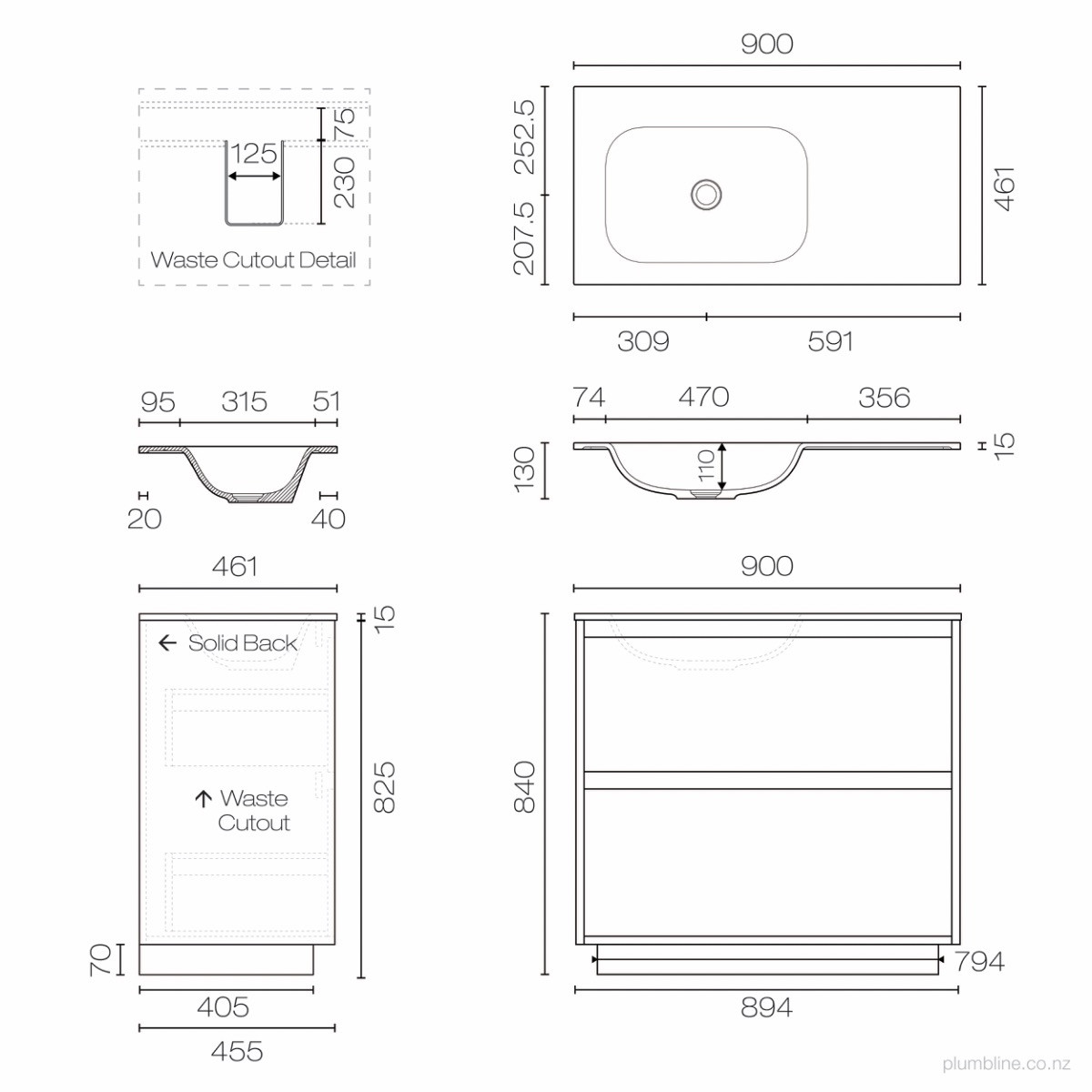 Prava Spio 900 2 Drawer Floor Vanity Right Basin
