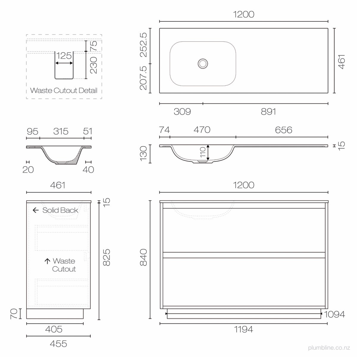 Prava Spio 1200 2 Drawer Floor Vanity Right Basin