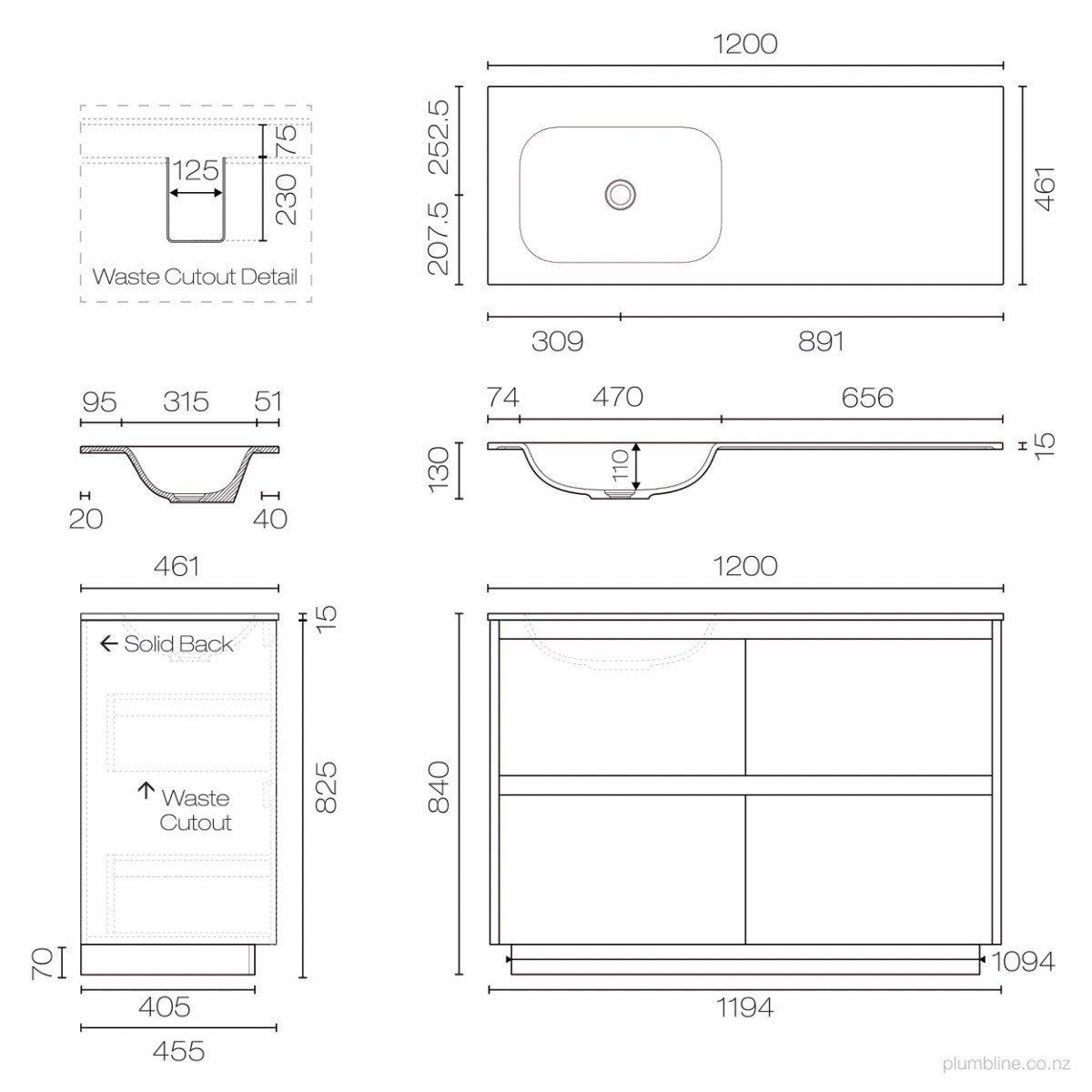 Stanza Spio 1200 4 Drawer Floor Vanity Left Basin