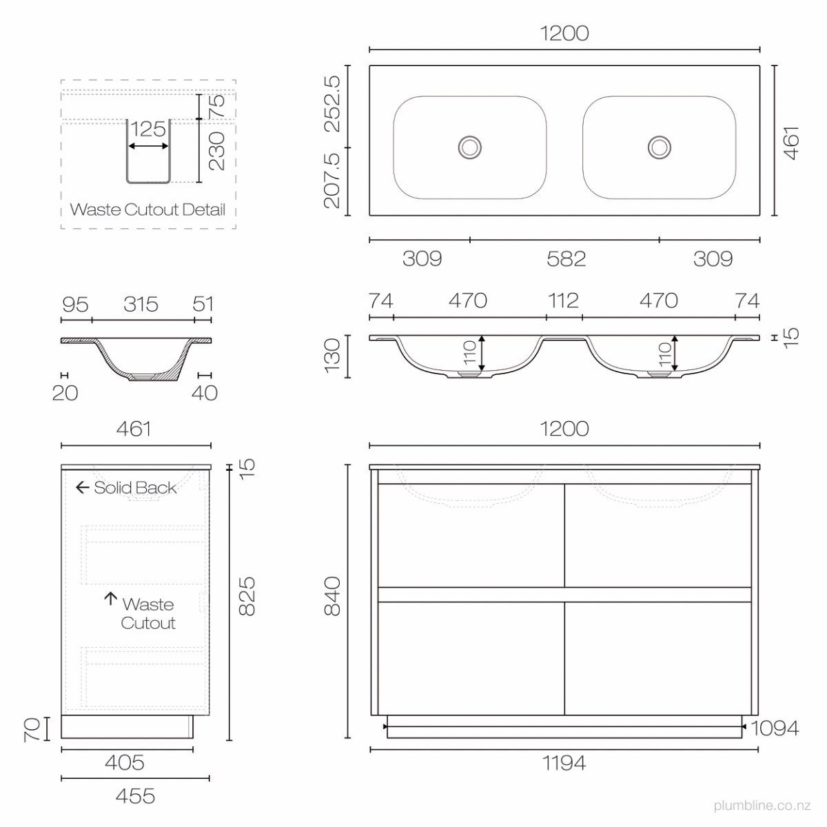 Stanza Spio 1200 4 Drawer Floor Vanity Double Basin