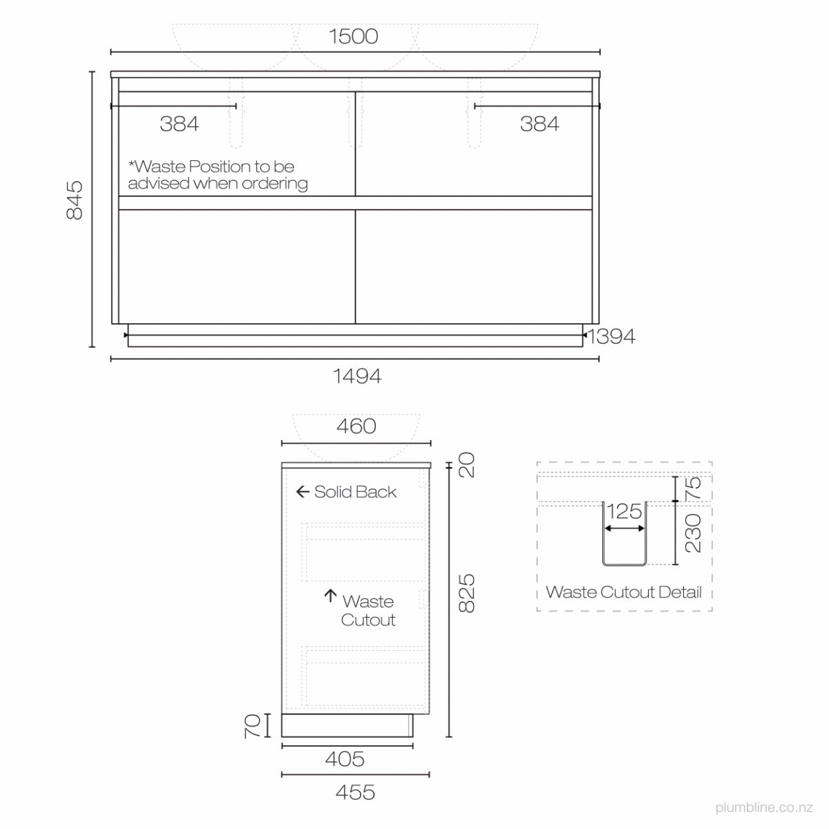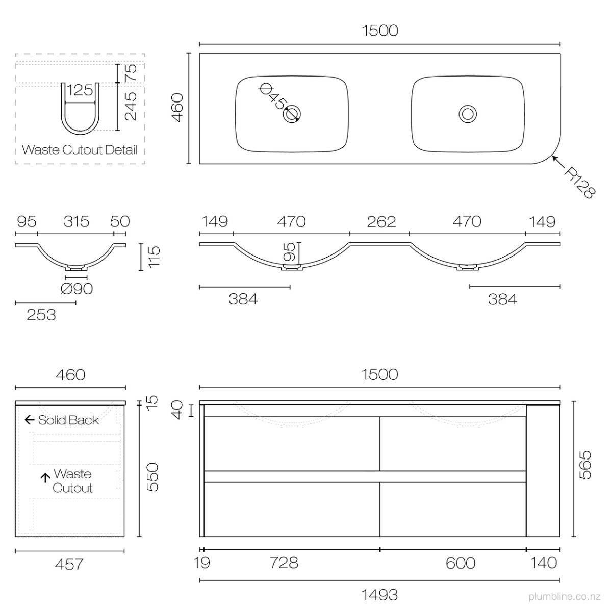Stanza Curve Spio 1500 Left Corner 4 Drawer Vanity Double BasinPlumblineNZ$7,999.00View productCompare