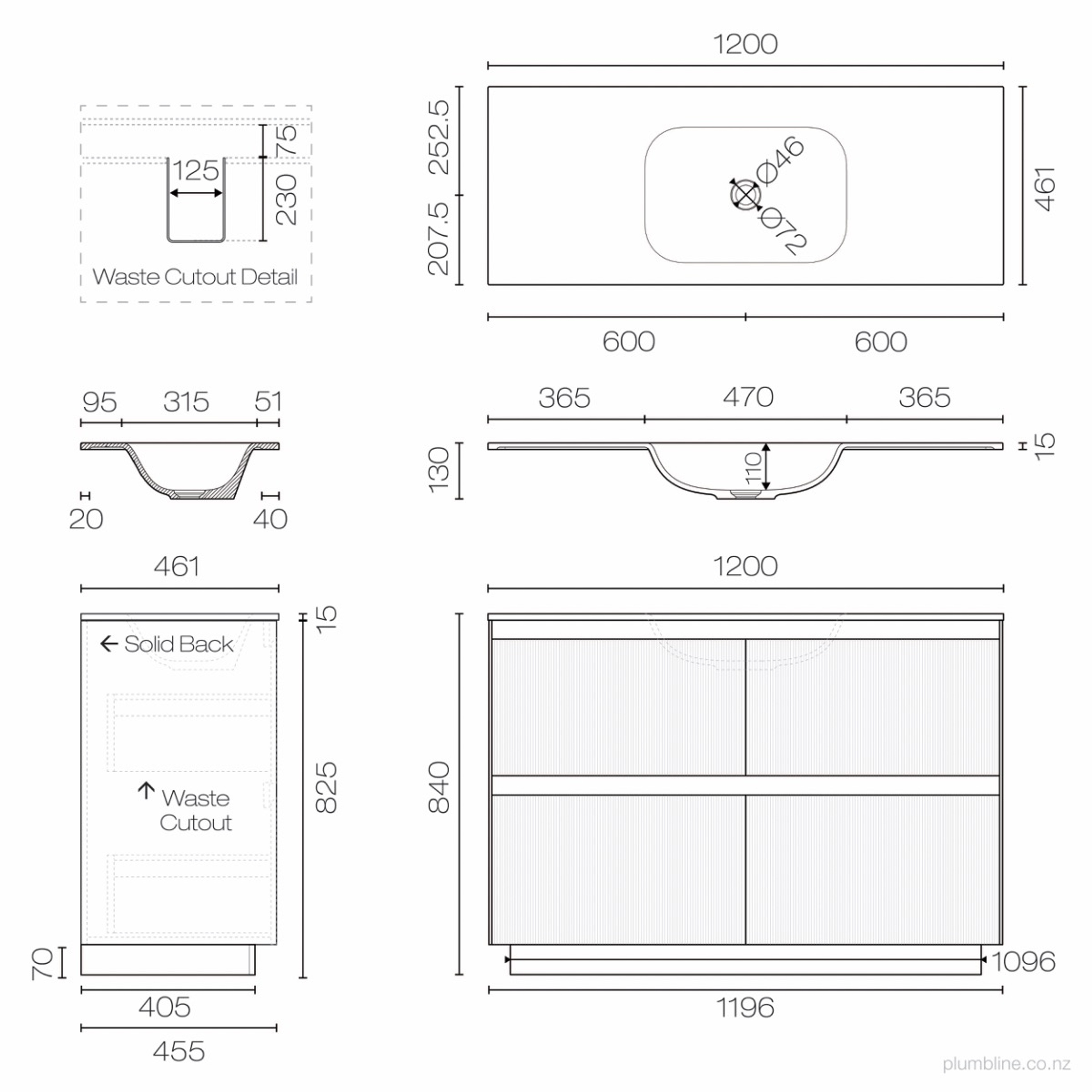 Strata Spio 1200 4 Drawer Floor Vanity Centre Basin