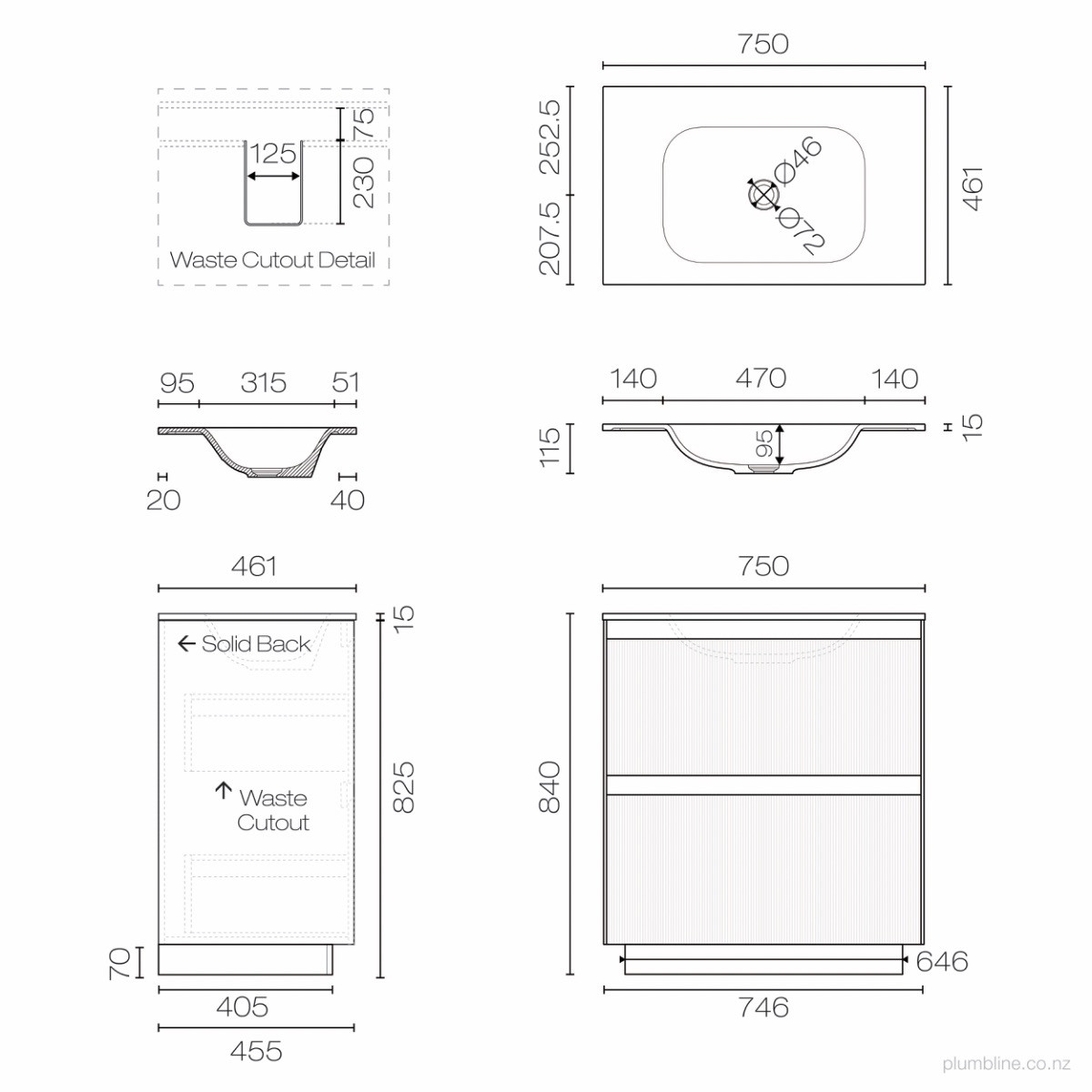 Strata Spio 750 2 Drawer Floor Vanity