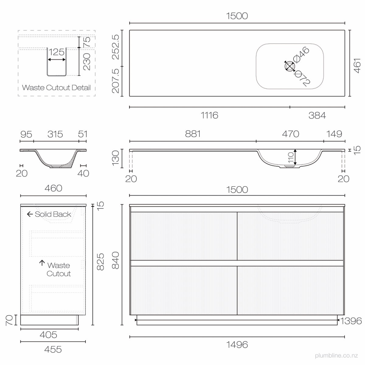 Strata Spio 1500 2 Drawer Vanity Right Basin