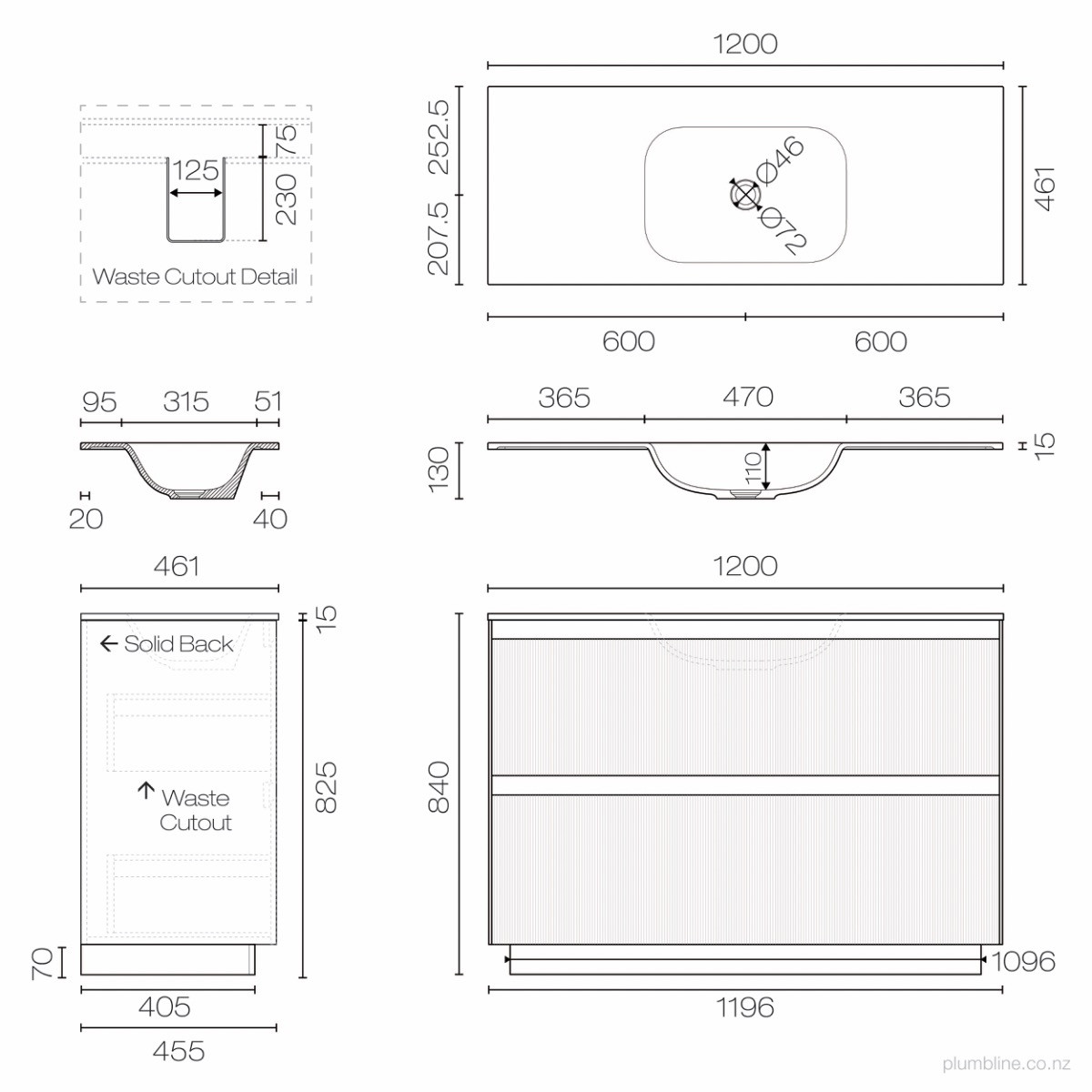 Strata Spio 1200 2 Drawer Floor Vanity Centre Basin