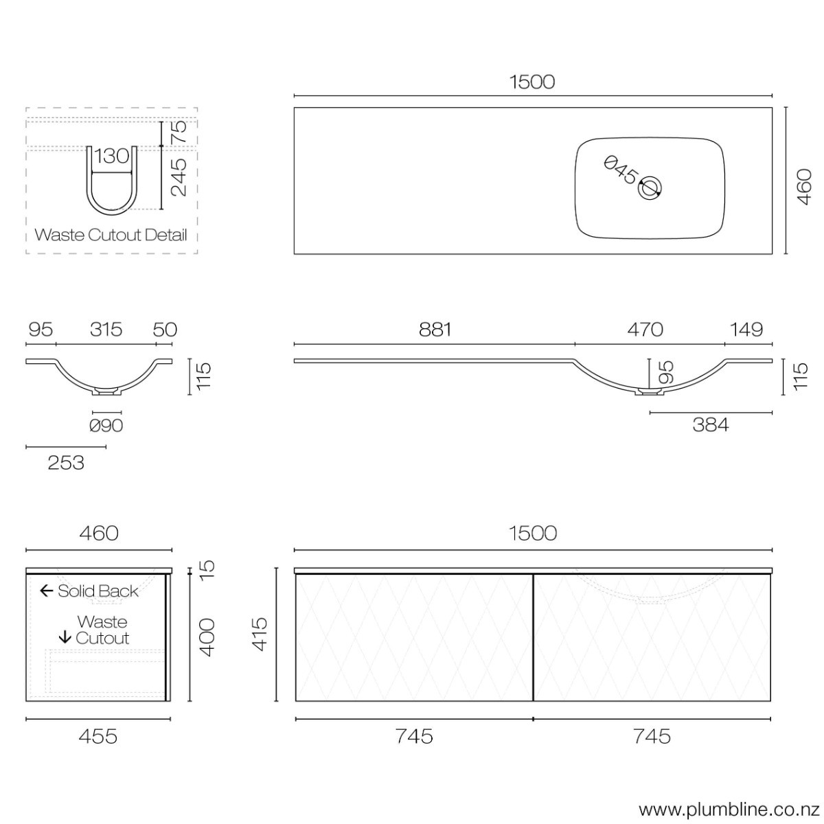 The diamond-shaped form of Deco adds style to any bathroom. Available in 13 contemporary colours with a beautifully contoured solid surface Spio top, then finished off with your choice of cabinet handle or knob.