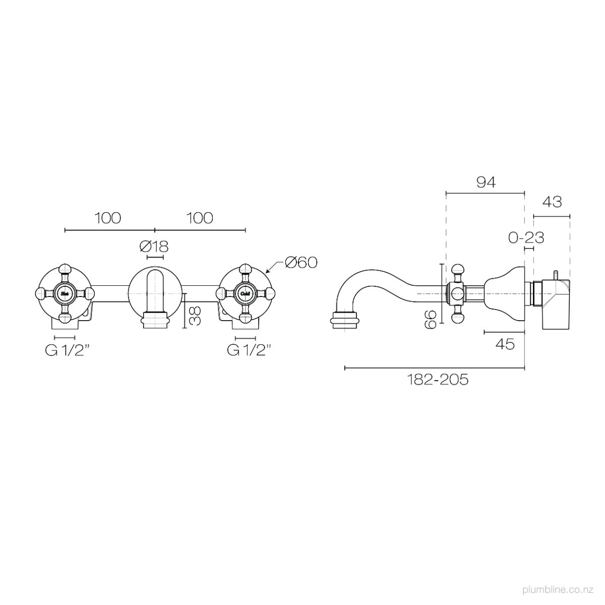 Empire Lever 3 Hole Wall Mount Basin Mixer