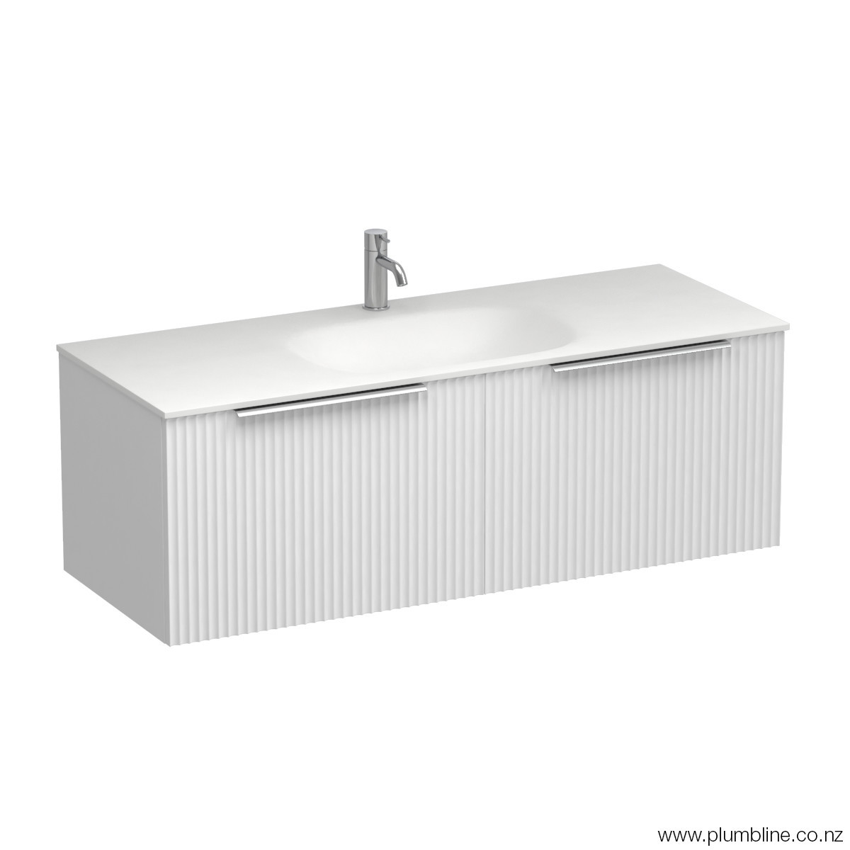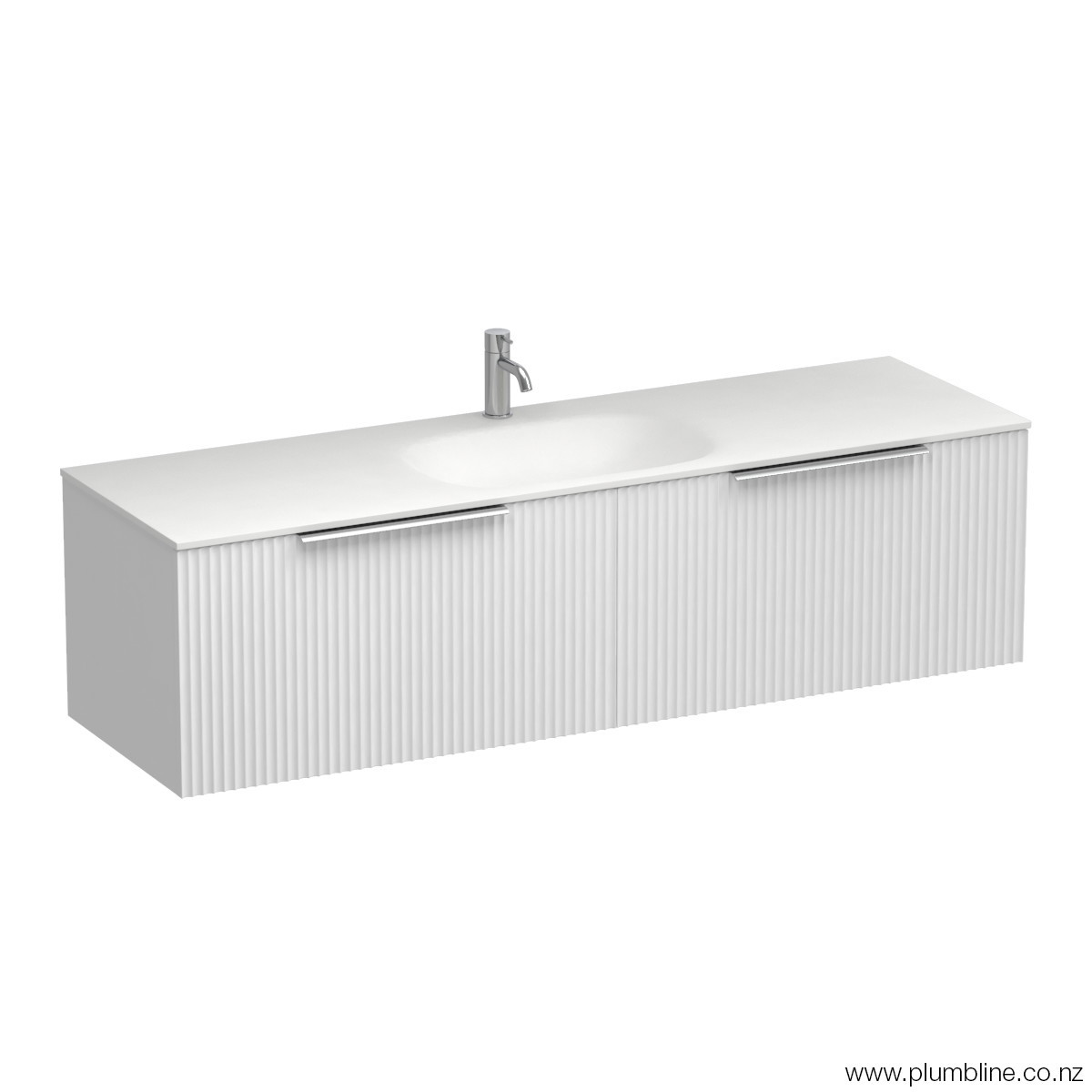 A collection inspired by the latest global trend of fluted finishes where the linear moulded Forma cabinetry is combined with the sleek contoured solid surface Spio basin. The drawers are offered in a variety of fashion colours and finished with a slimline handle in your choice of 7 colours. The Forma Spio collection will add texture and style to any new bathroom.