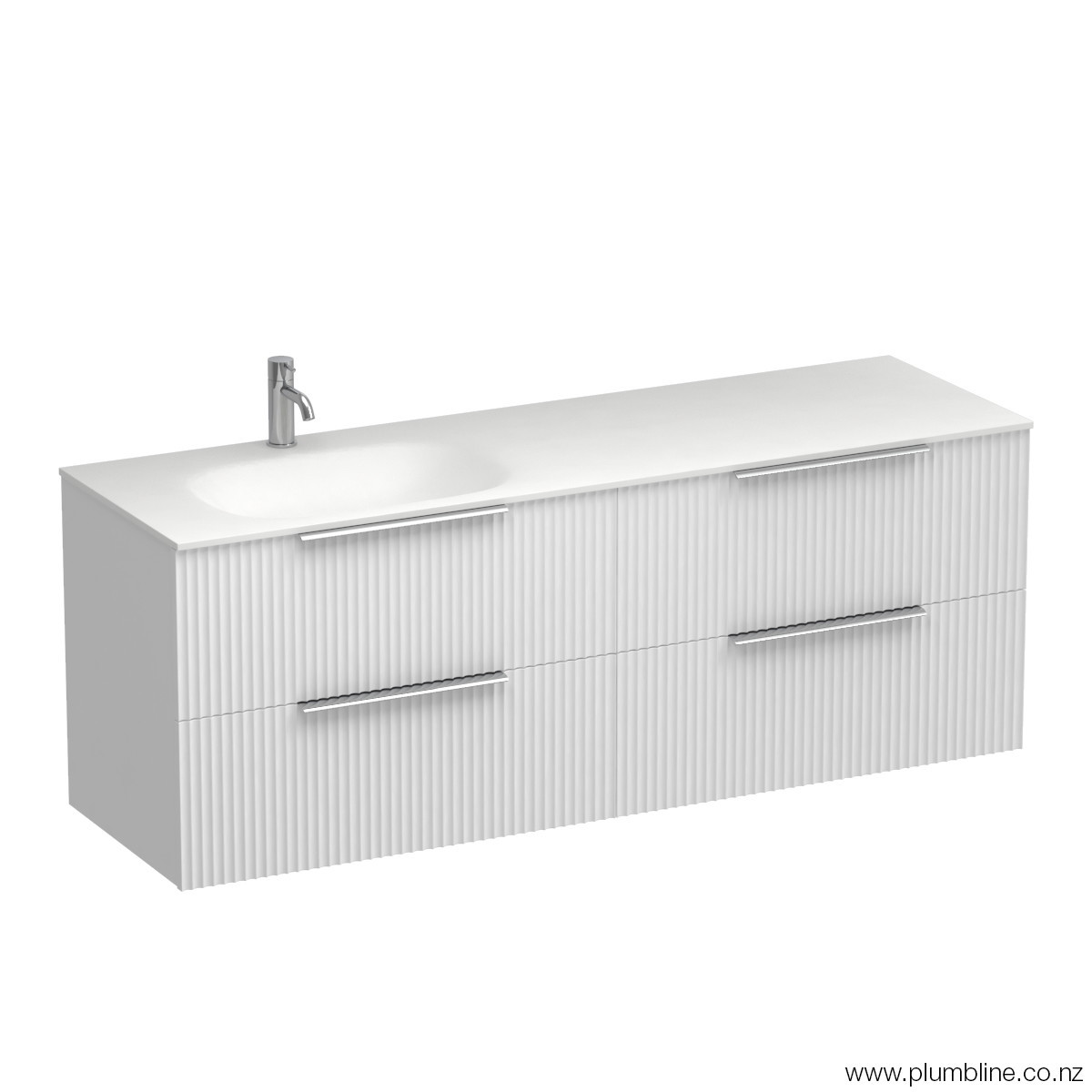 A collection inspired by the latest global trend of fluted finishes where the linear moulded Forma cabinetry is combined with the sleek contoured solid surface Spio basin. The drawers are offered in a variety of fashion colours and finished with a slimline handle in your choice of 7 colours. The Forma Spio collection will add texture and style to any new bathroom.