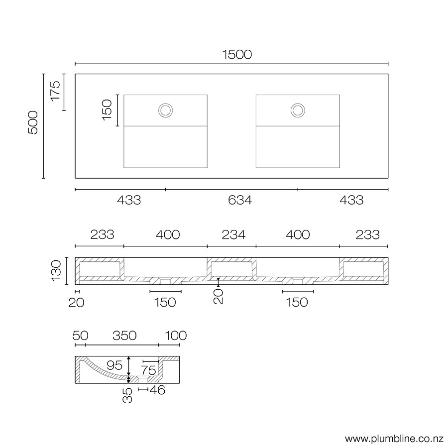 Gola 1500 Double Vanity Top