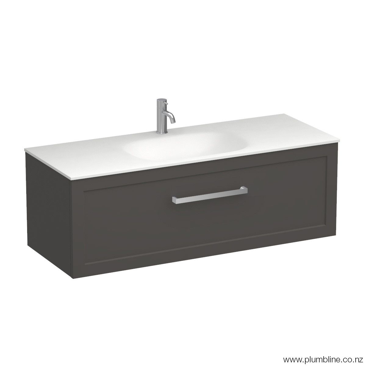 The beautifully contoured moulded solid surface Spio basin combined with the Hampton vanity. The grooved detailed drawers are offered in twelve on-trend colour options with the added versatility of selecting either handles or knobs. The Hampton Spio will suit any sophisticated bathroom.