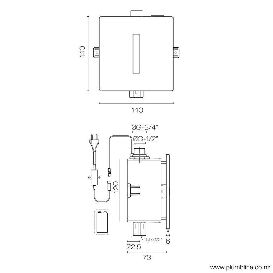 Jupiter Concealed Electronic Urinal Flush Valve 9V Transformer
