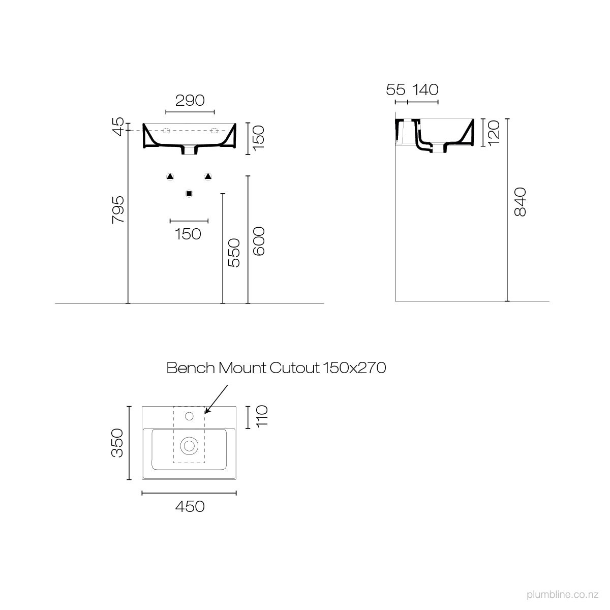 Kube X 450 x 350 Basin Matt White No Taphole