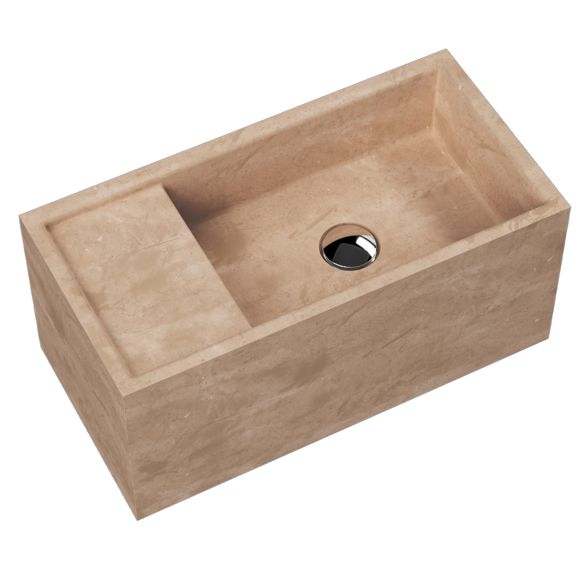 Valued for its beauty and versatility, Travertine is a natural stone characterised by its unique texture and warm, neutral colours. Due to the natural formation process, each Travertine basin will vary in colour and texture.
