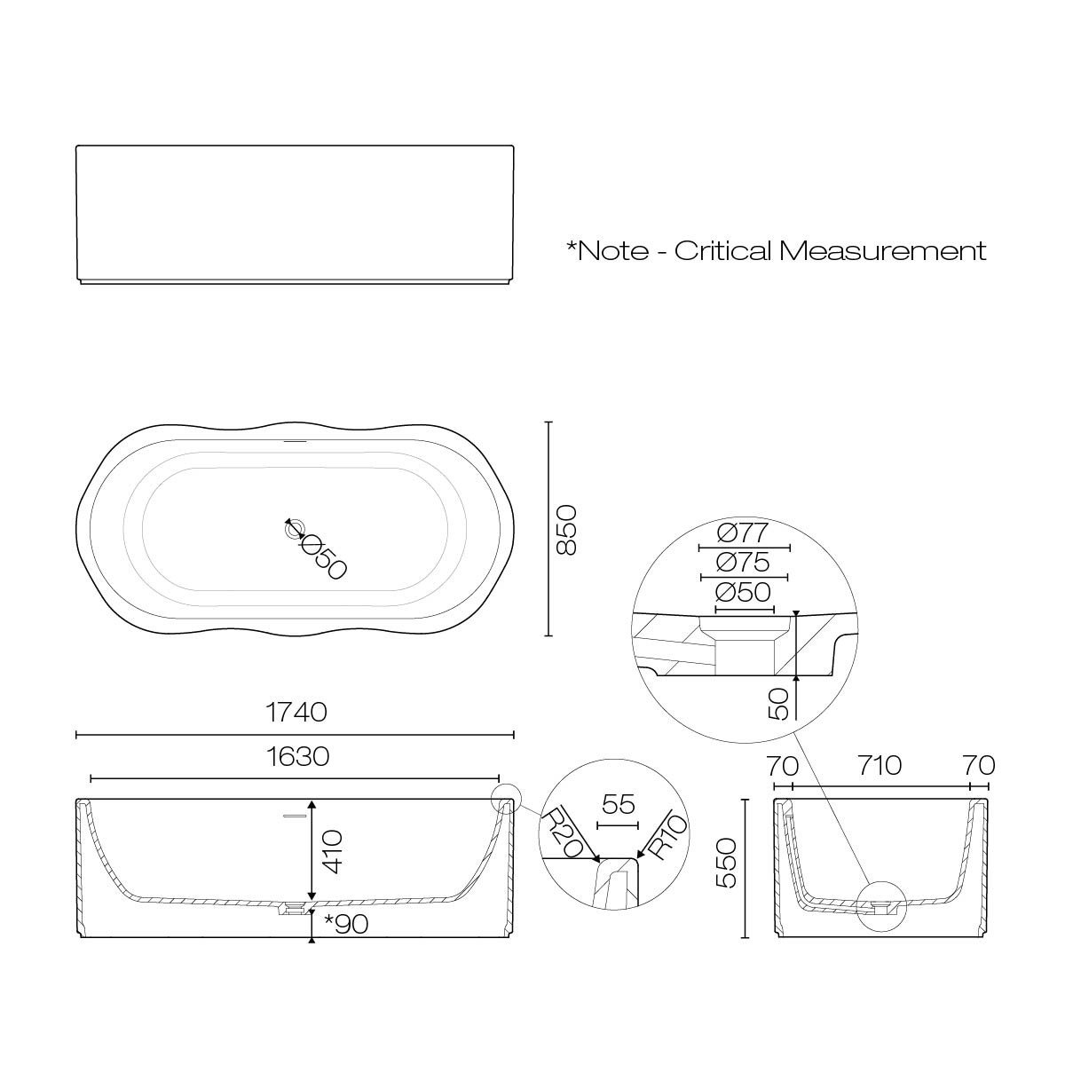 Wave 1700 Freestanding Bath