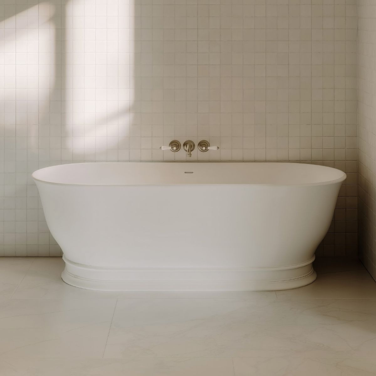 The Impero bath is a classic yet timeless piece, crafted from matt solid surface material, featuring a delicate yet distinctive roll-top detail, reminiscent of ancient Rome's colossal columns and statues. Complete your elegant bathroom sanctuary with the matching Impero basin.