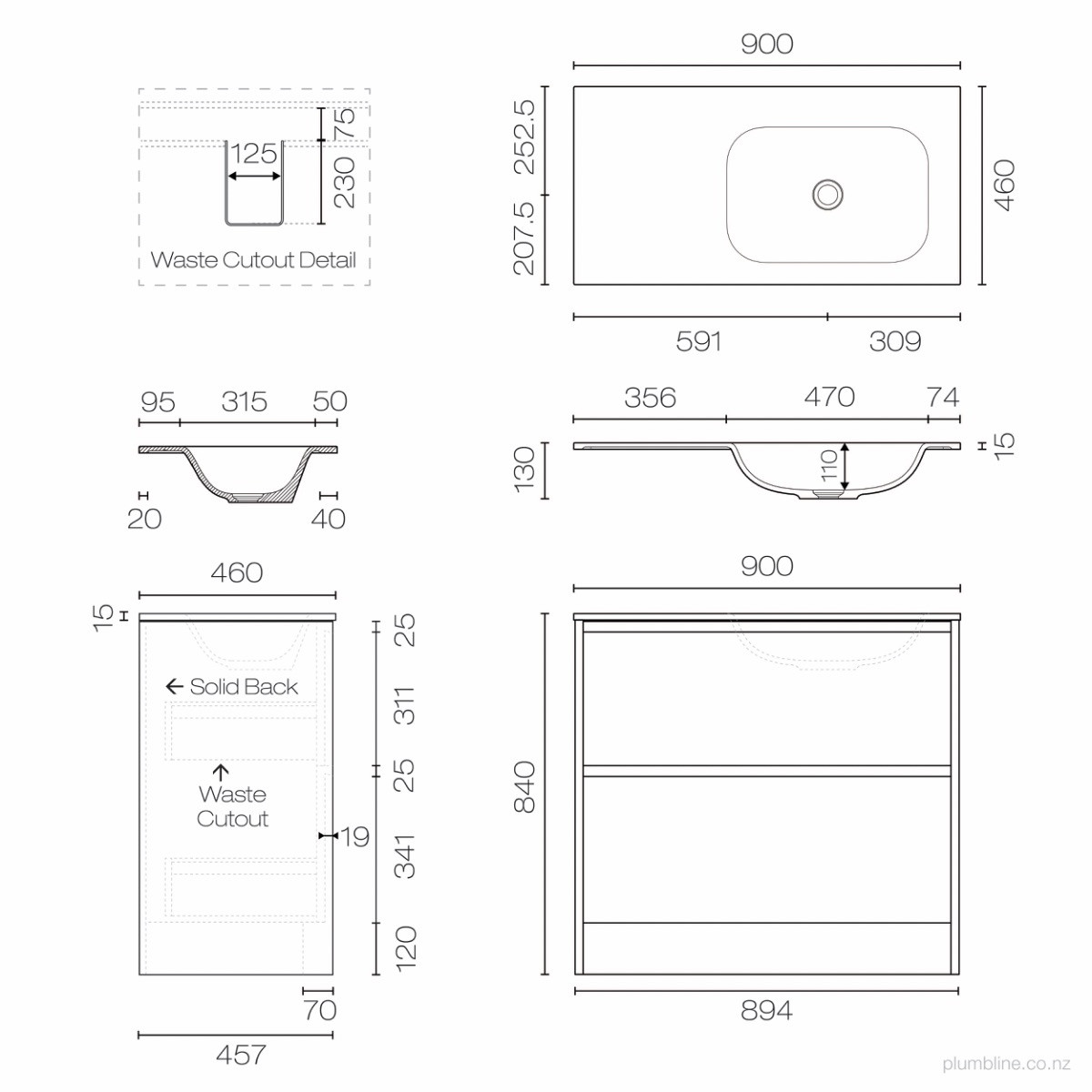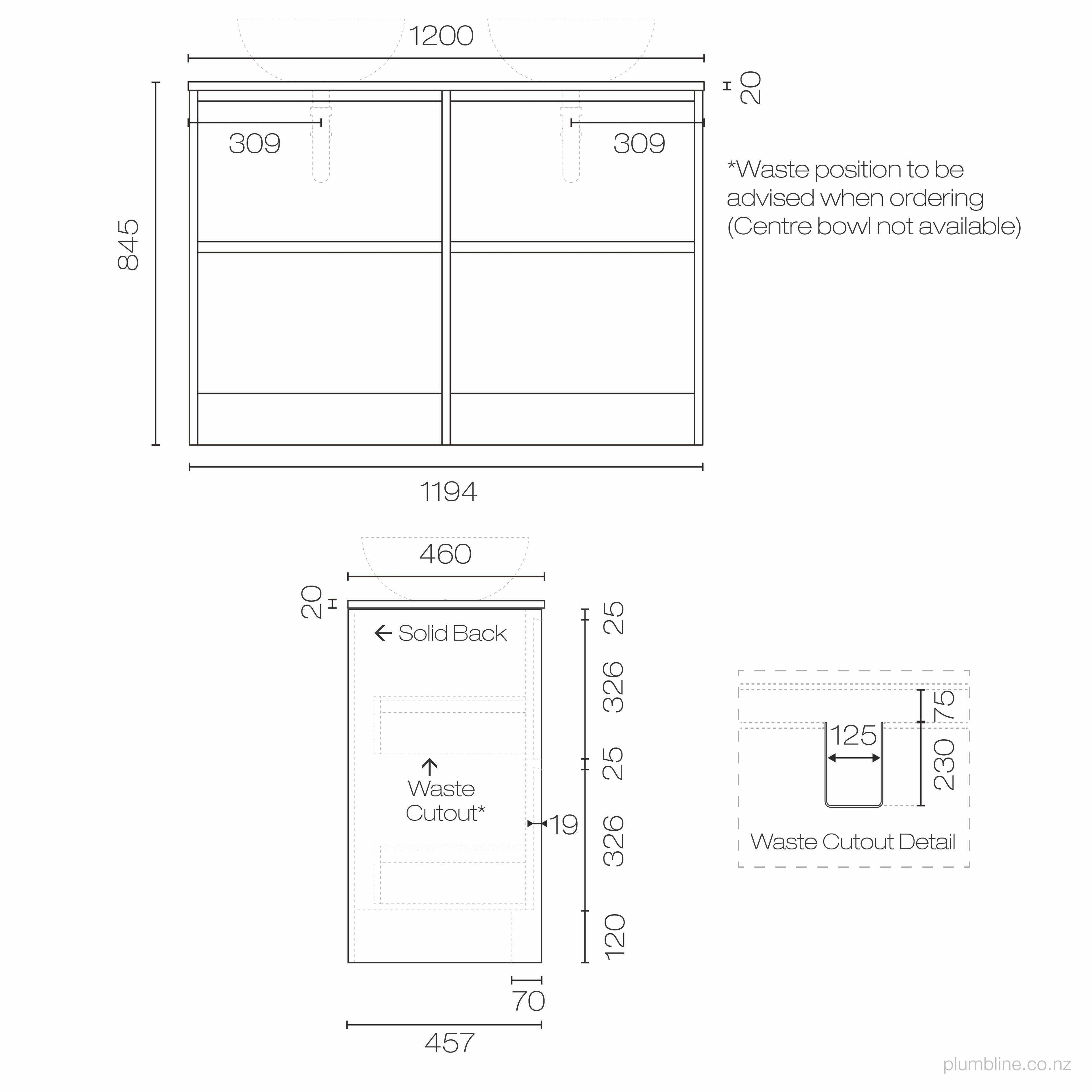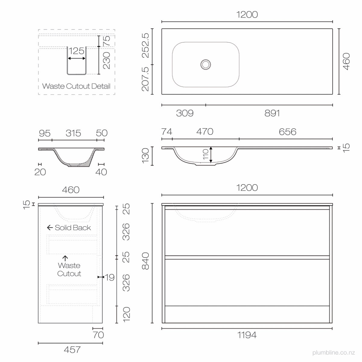 Alma Spio 1200 2 Drawer Floor Vanity Right Basin