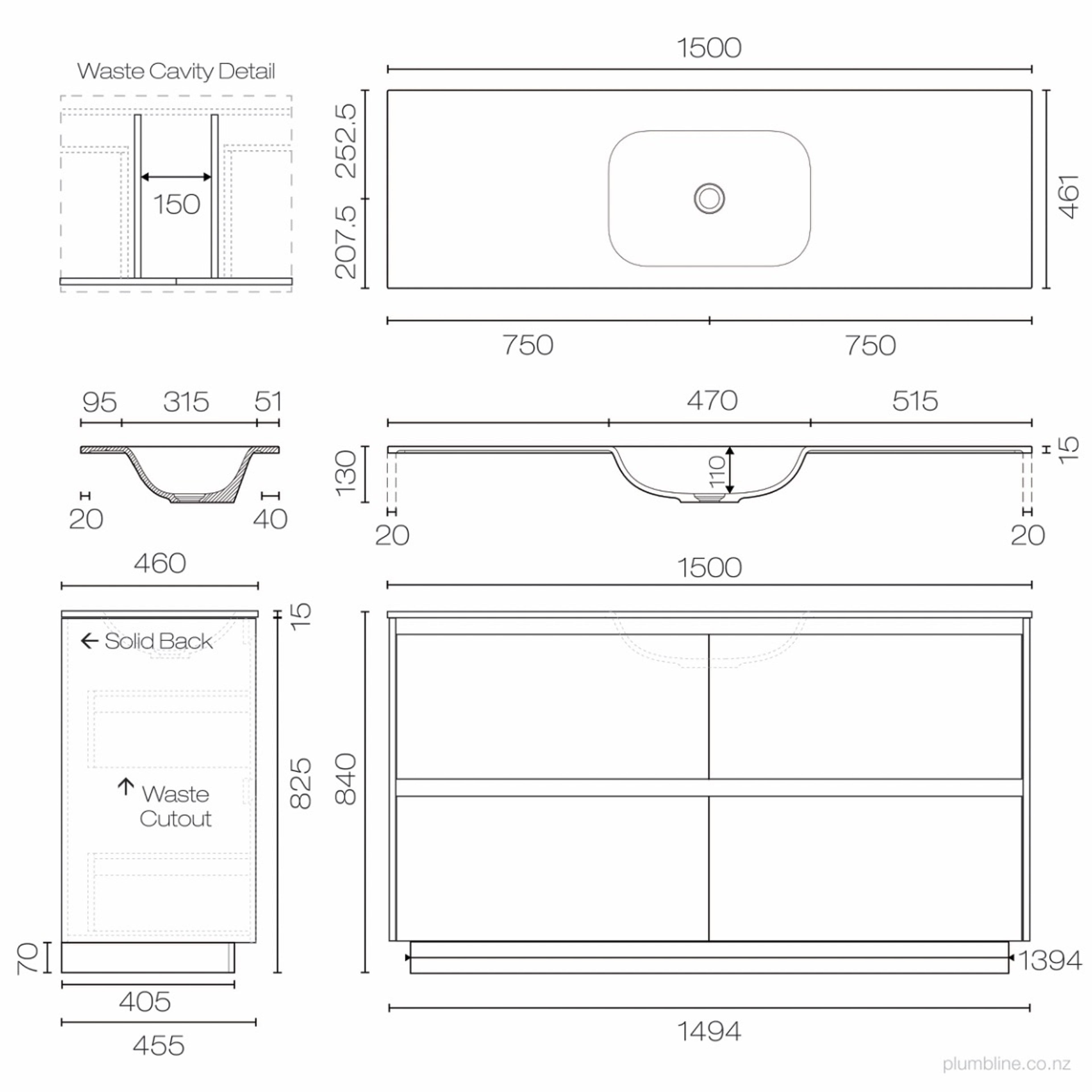 Stanza Spio 1500 4 Drawer Floor Vanity Centre Basin