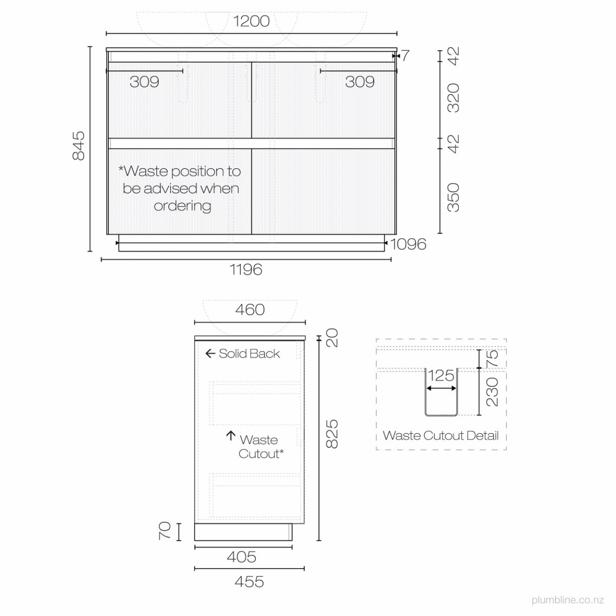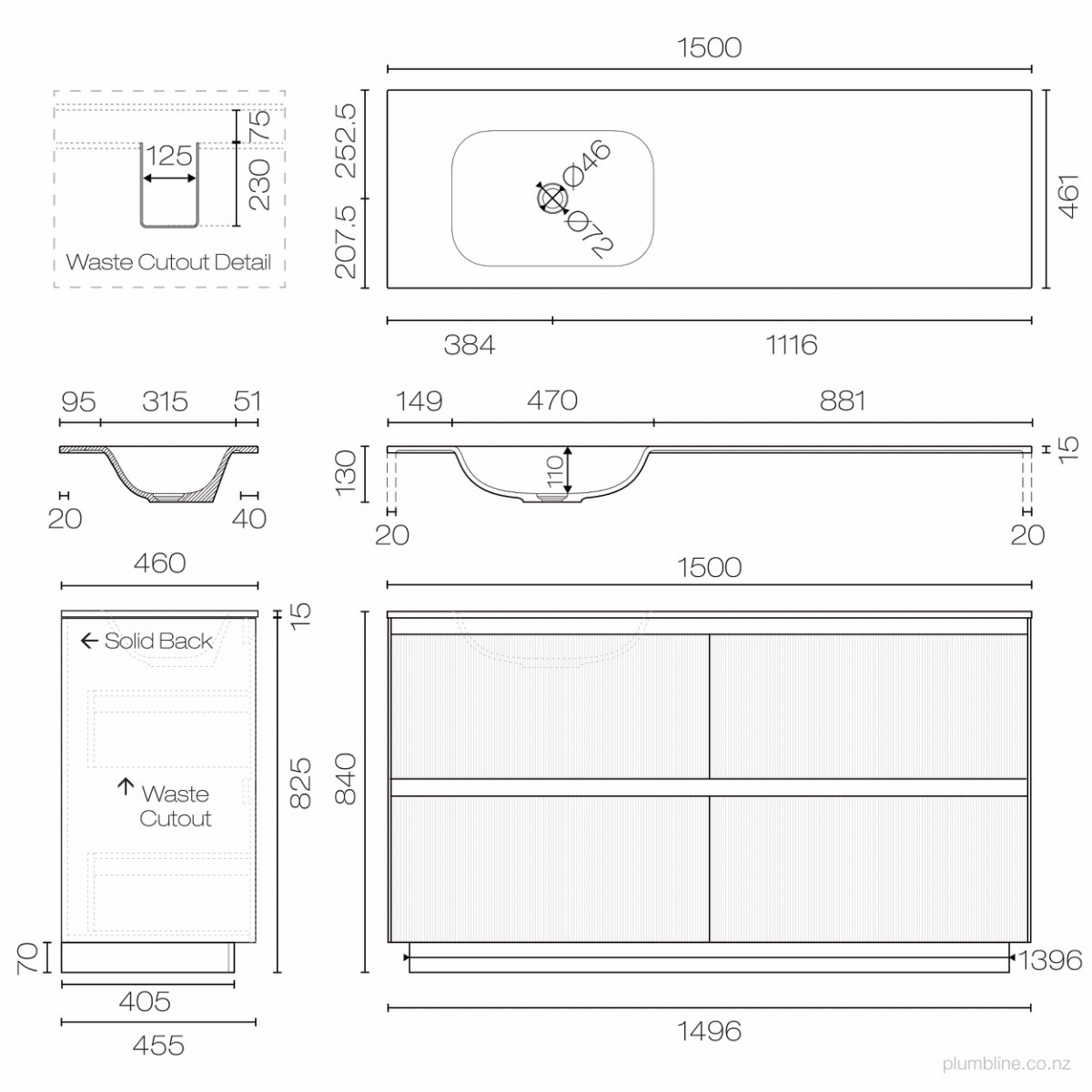 Strata Spio 1500 2 Drawer Vanity Right Basin