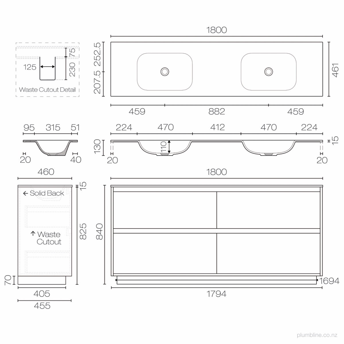 Optional extra for installation inside single height vanities. (1)