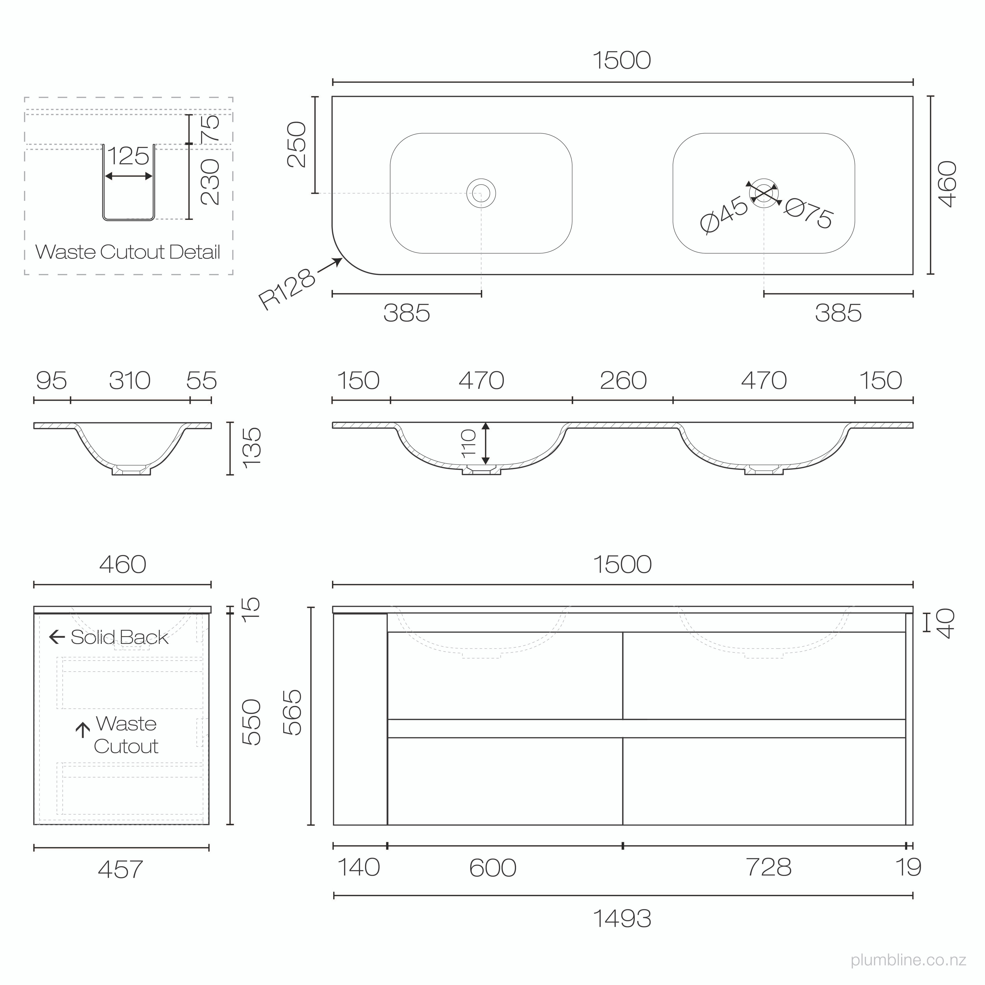 Stanza Curve Spio 1500 Right Corner 2 Drawer Vanity Double BasinPlumblineNZ$6,499.00View productCompare