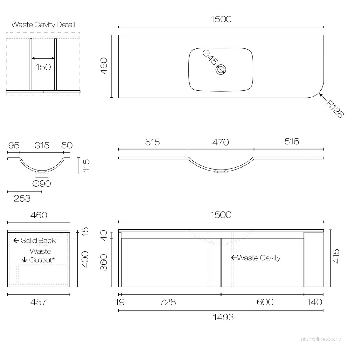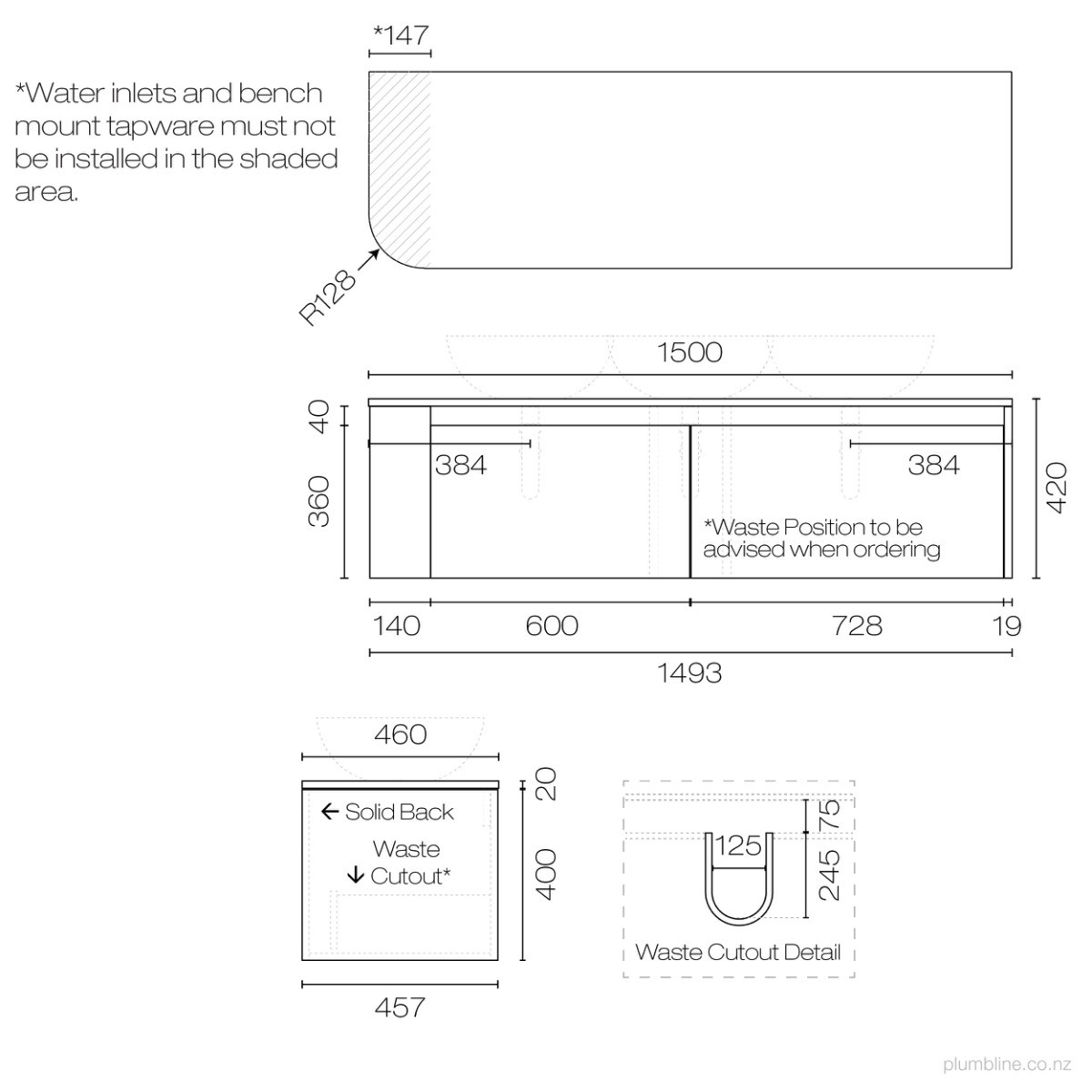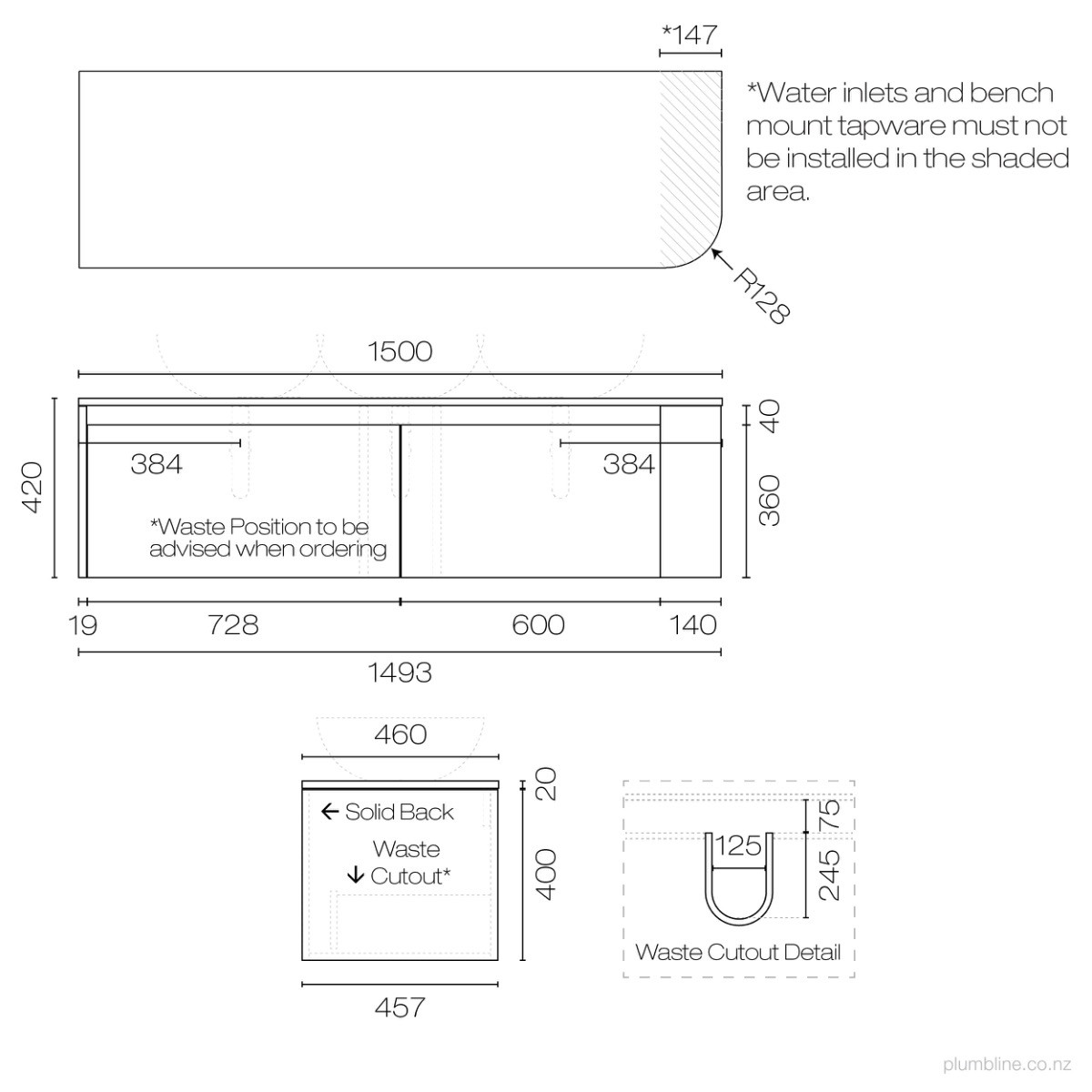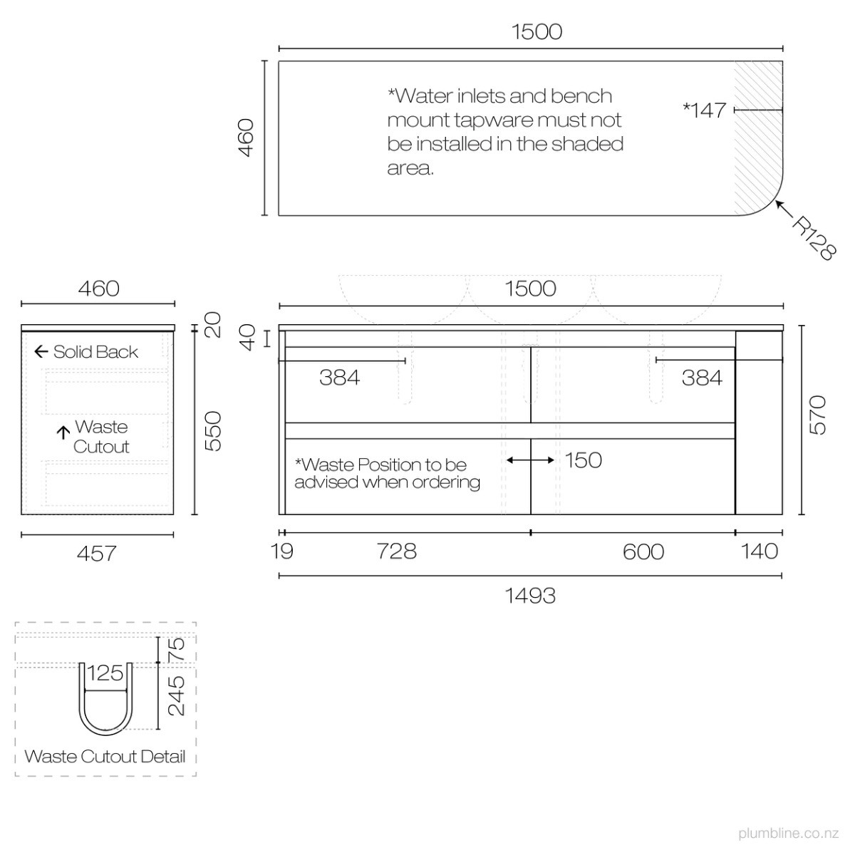 Stanza Curve Spio 1500 Left Corner 2 Drawer Vanity Double BasinPlumblineNZ$6,499.00View productCompare