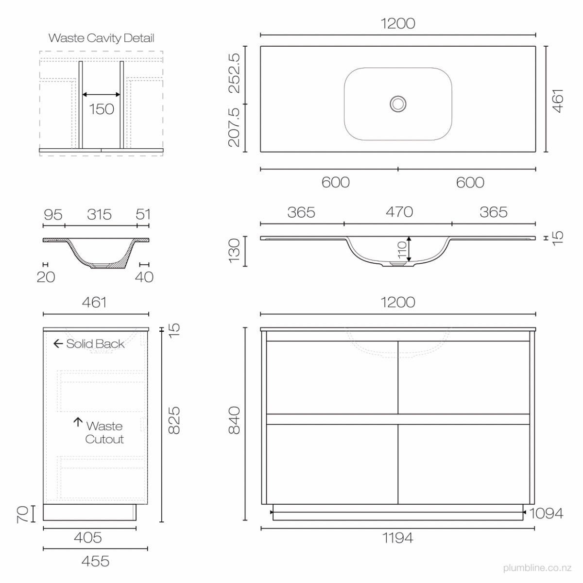 Stanza Spio 1200 4 Drawer Floor Vanity Centre Basin