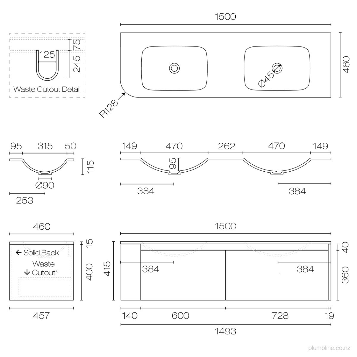 Stanza Curve Spio 1500 Right Corner 2 Drawer Vanity Double BasinPlumblineNZ$6,499.00View productCompare