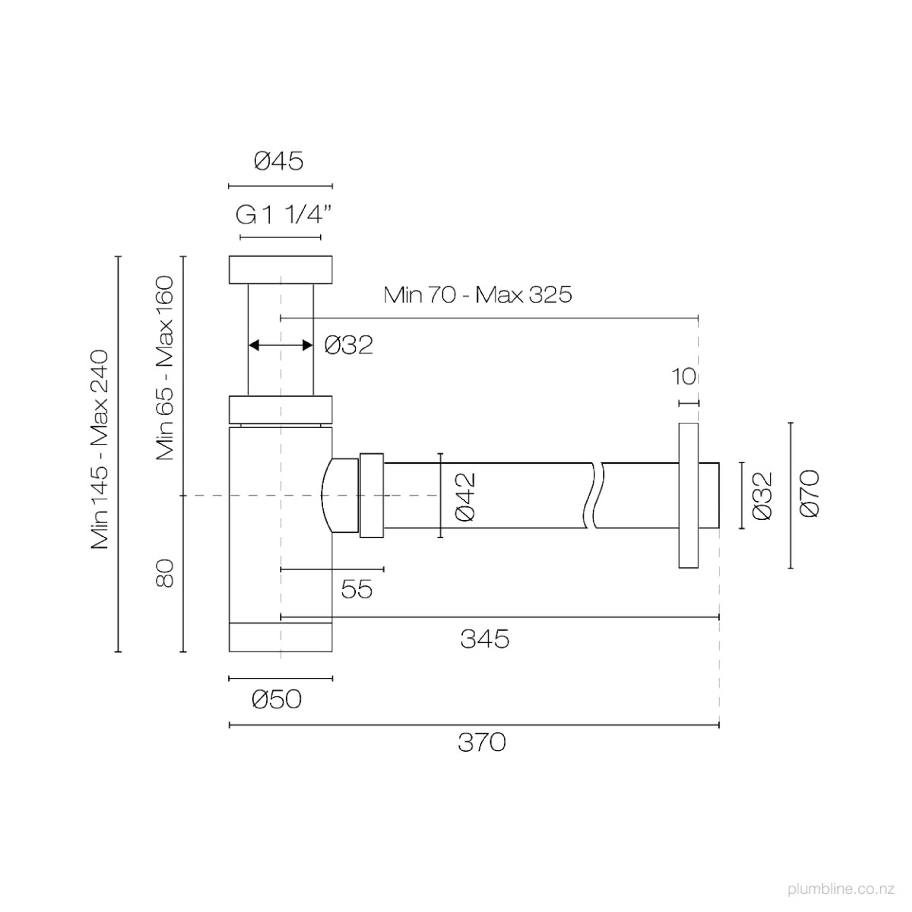 Plumbline Bottle Trap 300mm Outlet Pipe 32mm
