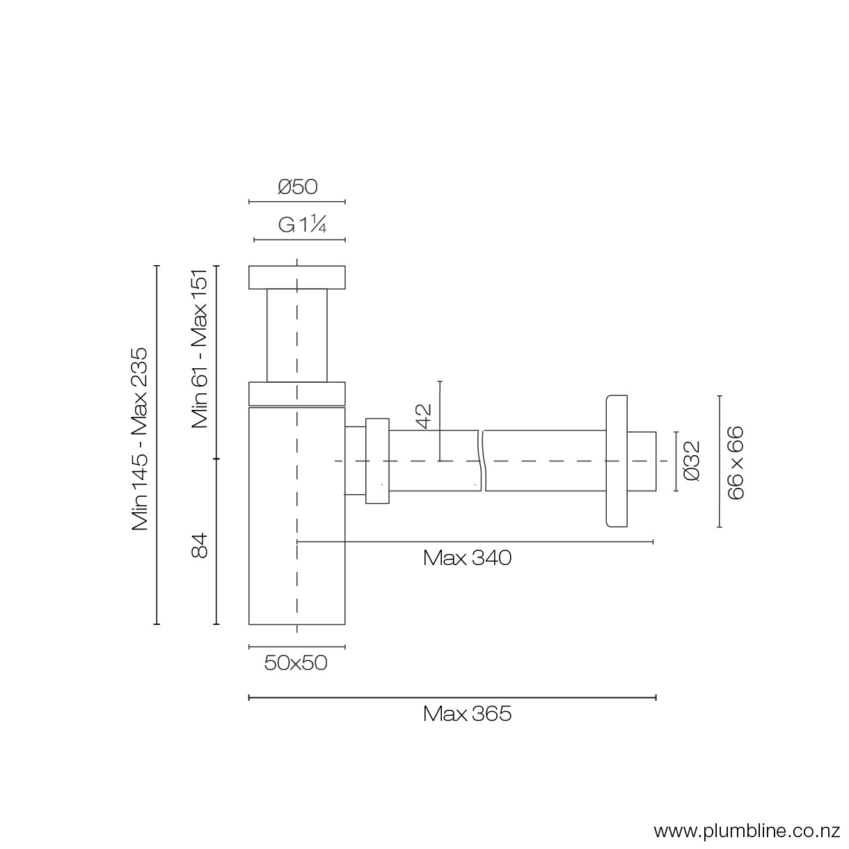 Plumbline Deluxe Bottle Trap 32mm