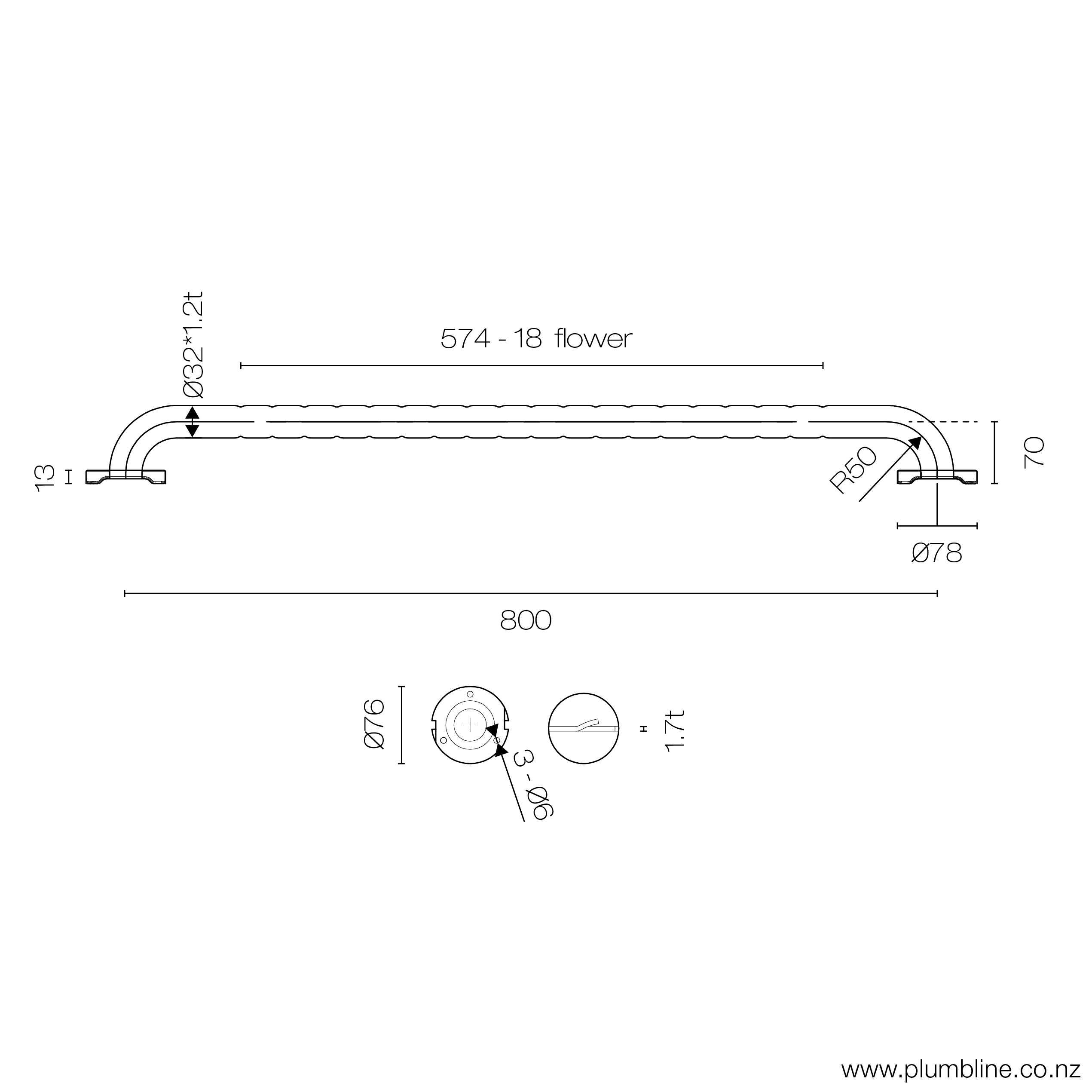 Plumbline Stainless Steel Grab Rail 800mm