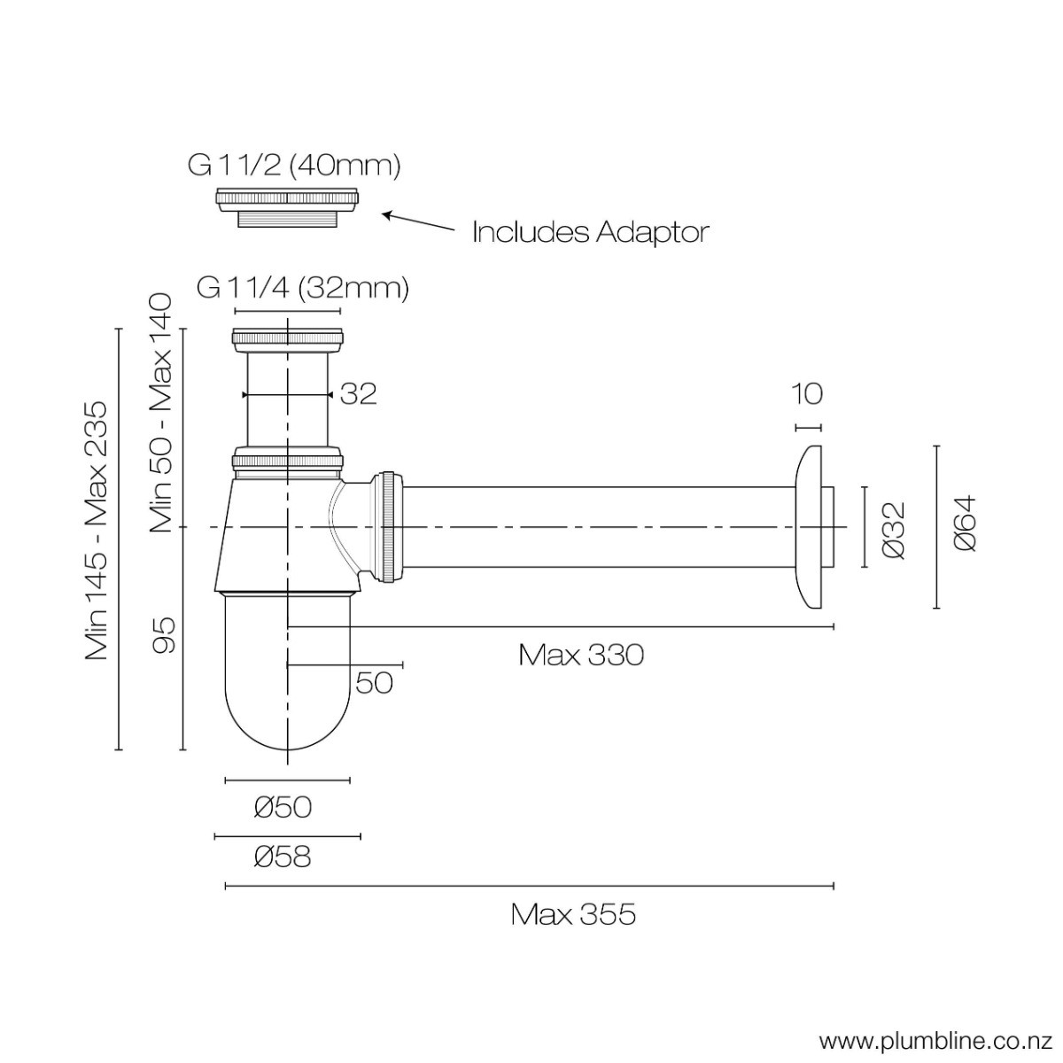 Plumbline Deluxe Bottle Trap 32mm