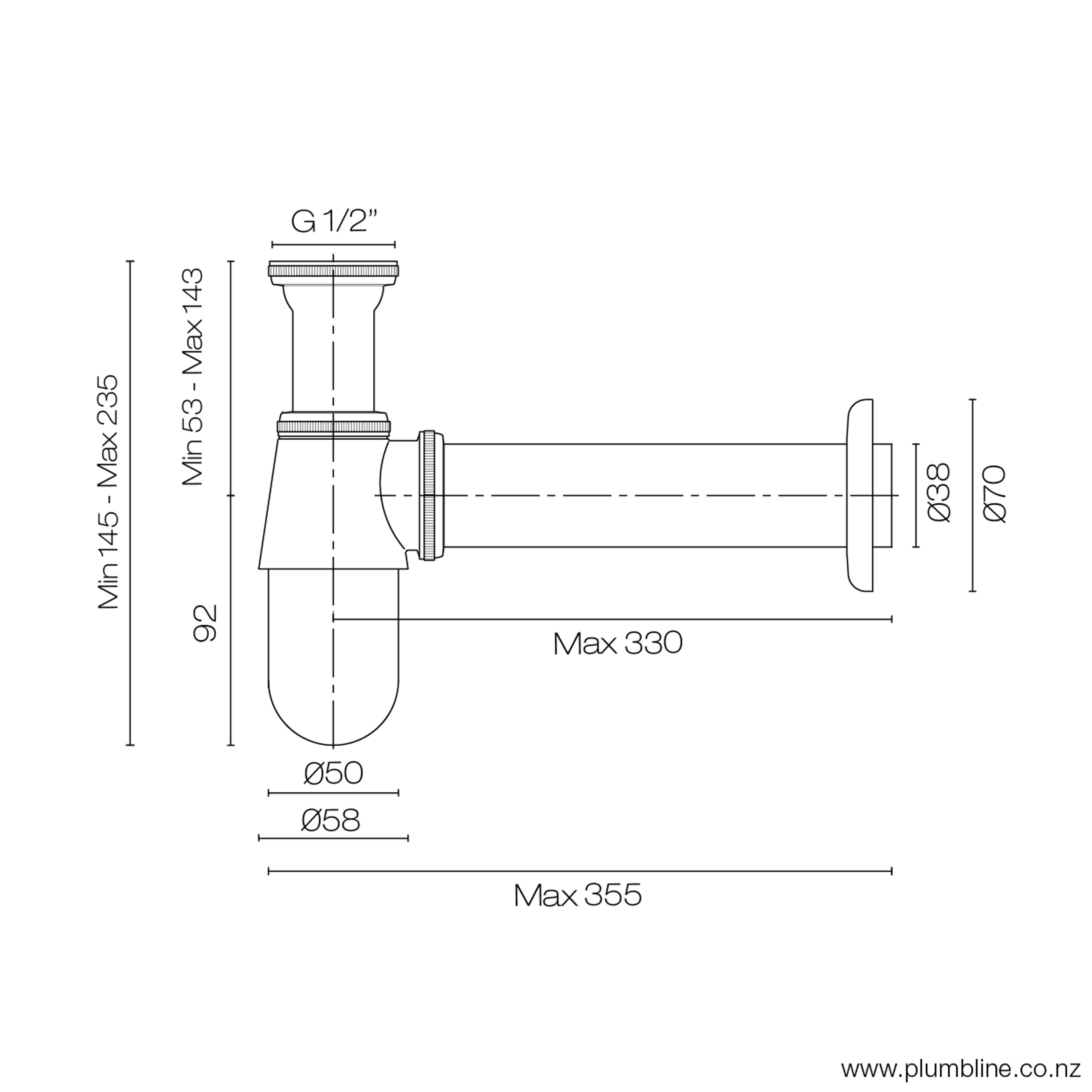 Plumbline Deluxe Bottle Trap 40mm Chrome