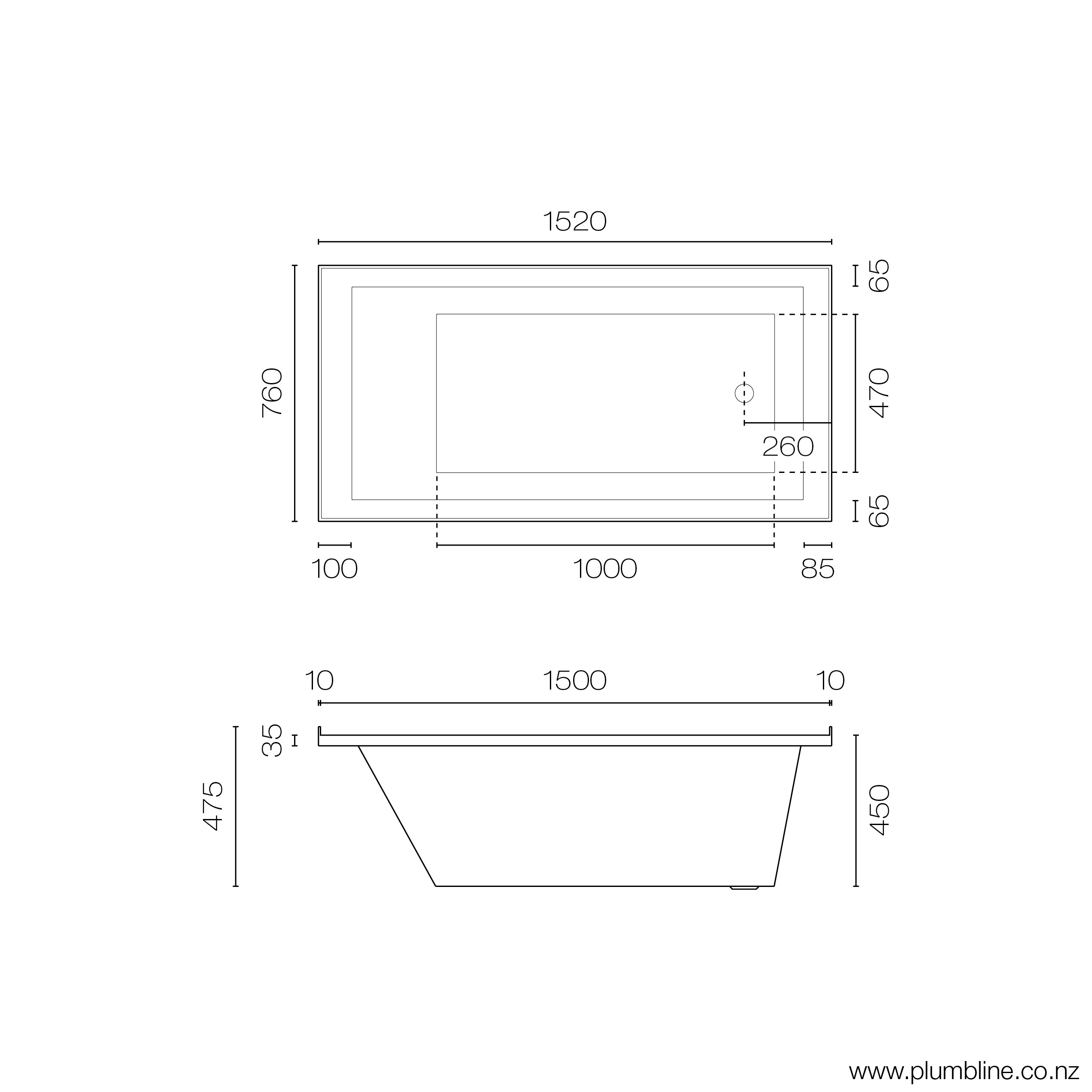 Pure 1520 Inset Bath With 4 Sided Lip