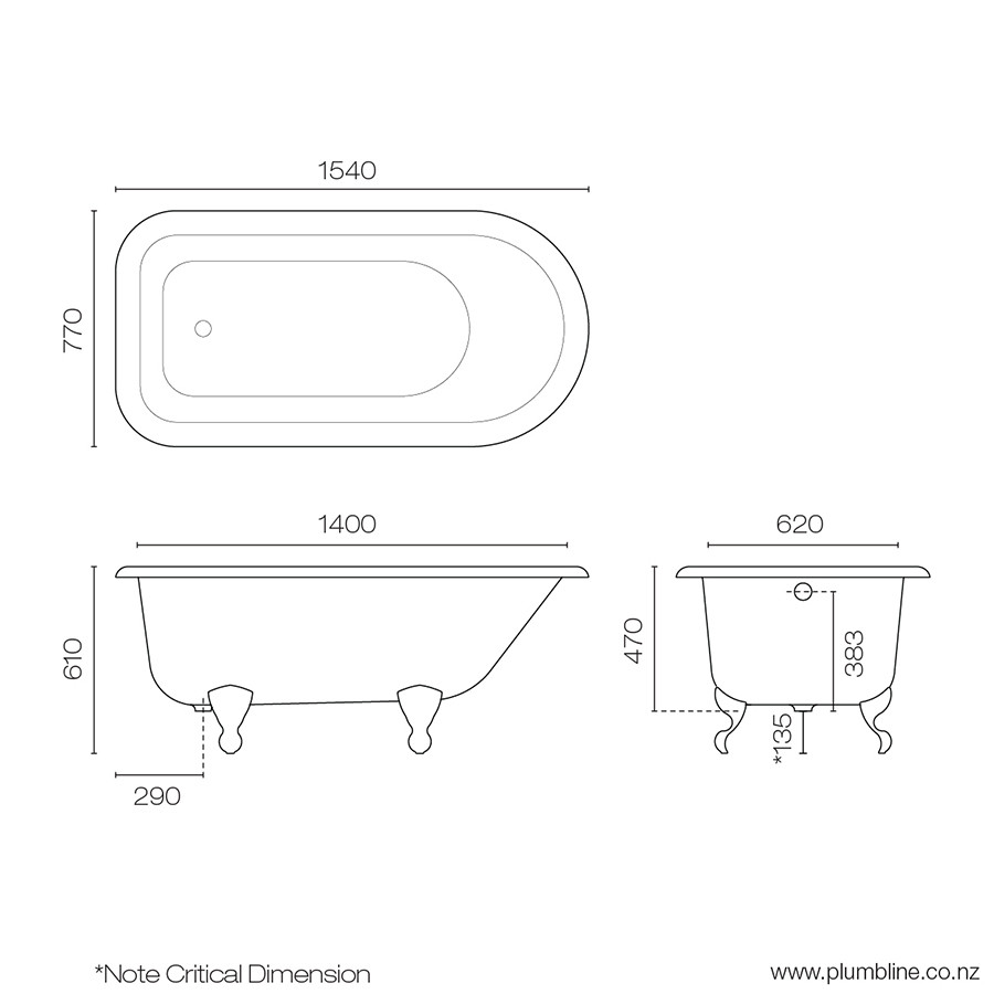 The Rolltop clawfoot bath is a stunning and elegant centrepiece for any luxury bathroom. Made in Portugal from Cast Iron and Class A Enamel, the bath is extremely hygienic, has a beautiful easy clean finish and a high level of thermal insulation to keep water hot for longer, while the bath exterior and feet can be painted in New Zealand to the colour of your choice.