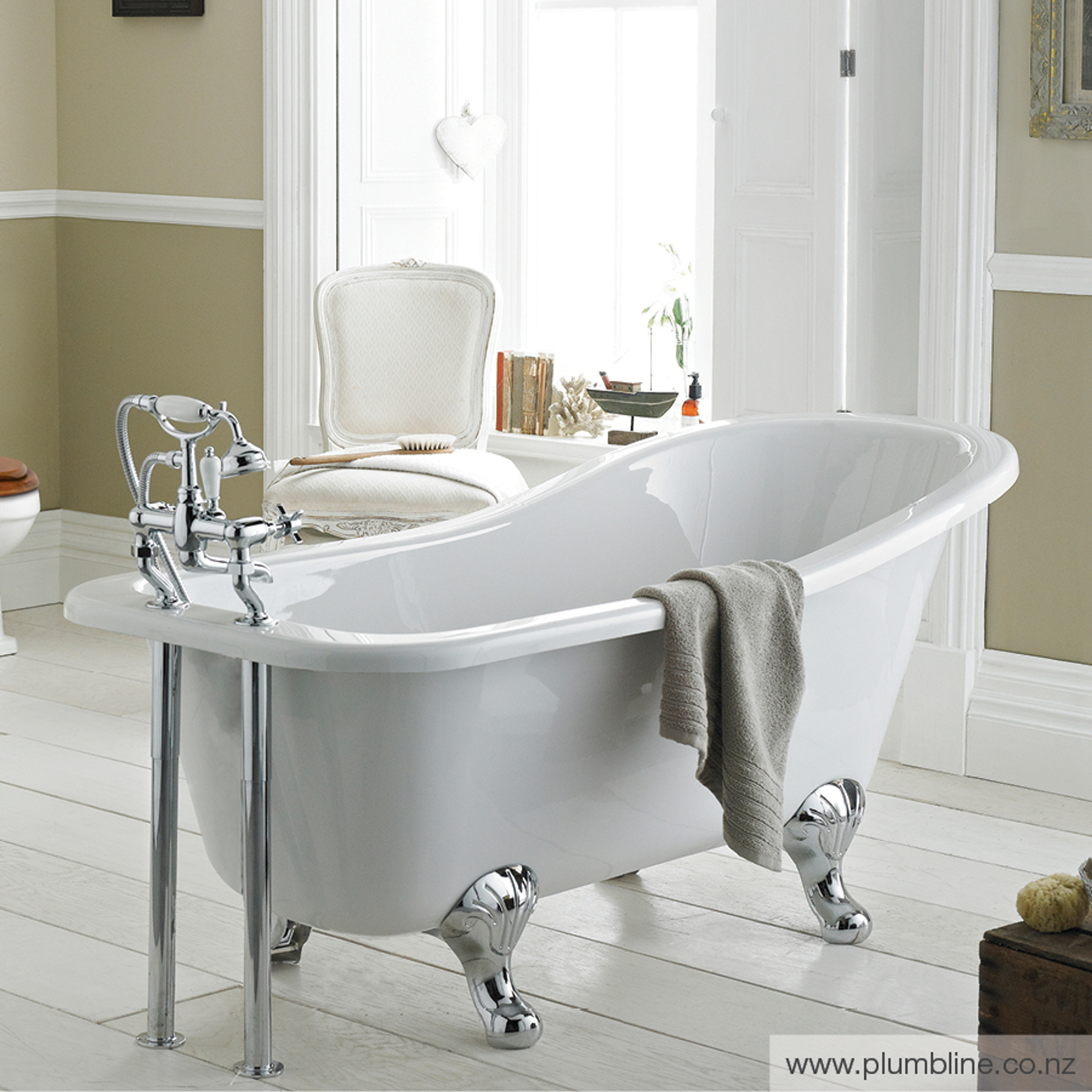 The Slipper clawfoot bath is a stunning and elegant centrepiece for any luxury bathroom. Made in Portugal from Cast Iron and Class A Enamel, the bath is extremely hygienic, has a beautiful easy clean finish and a high level of thermal insulation to keep water hot for longer, while the bath exterior and feet can be painted in New Zealand to the colour of your choice.